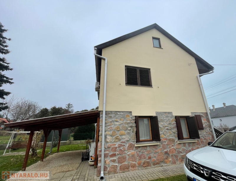Ezen a csodás településen kínáljuk eladásra ezt a 120 m2-es, kétszintes, 2+2 szobás, duplakomfortos nyaralóépületet, amely kőből, az emeleti ráépítés pedig téglából épült. Cseréptető fedésű. A homlokzat egy része dryvit szigeteléssel burkolt. Nyílászárói spalettákkal ellátott fa gyártásúak.