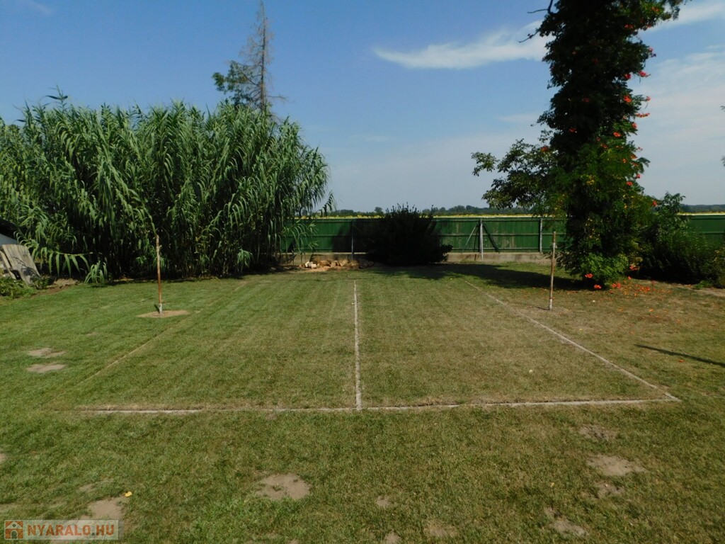 Az ingatlan közel 100 méter saját partszakasszal rendelkezik, ami szinte teljesen egyedülálló a maga nemében! A telek területe teljes egészében körbe kerített (vasbeton alapzattal, komoly, zárt kerítéssel) és a saját partszakaszon egy komplett, horgászásra és fürdésre is alkalmas saját stéggel is rendelkezik. Területe egyébként gyönyörűen parkosított, karban tartott, részben termő gyümölcsfákkal is beültetett.