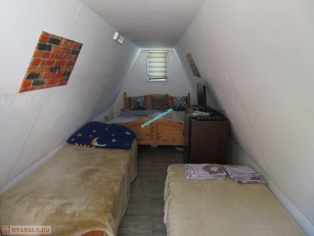 A nyaraló két szintes, villany hálózattal szerelt, víz vételi lehetőség a kemping