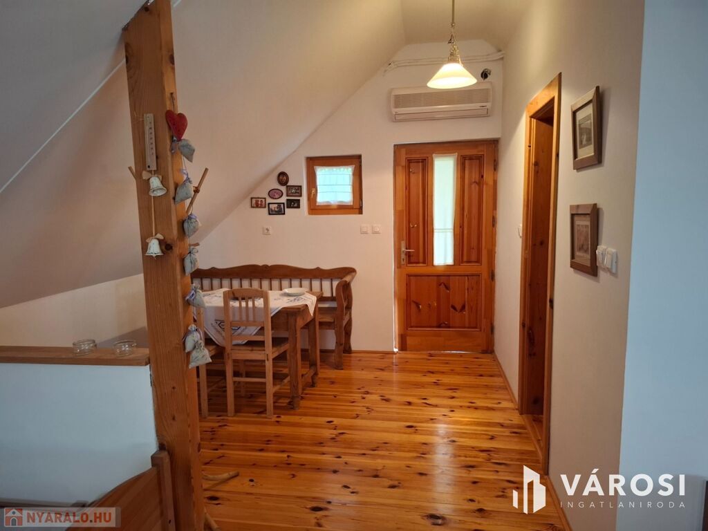 Az emelet külön bejárattal, terasszal és tágas nappali-hálószobával rendelkezik, ahonnan szintén részben balatoni panoráma nyílik.