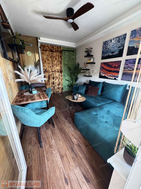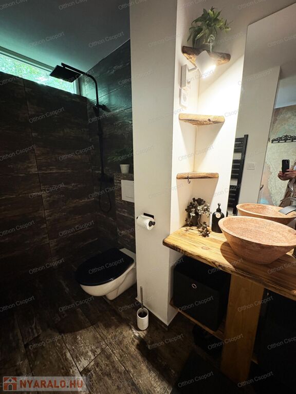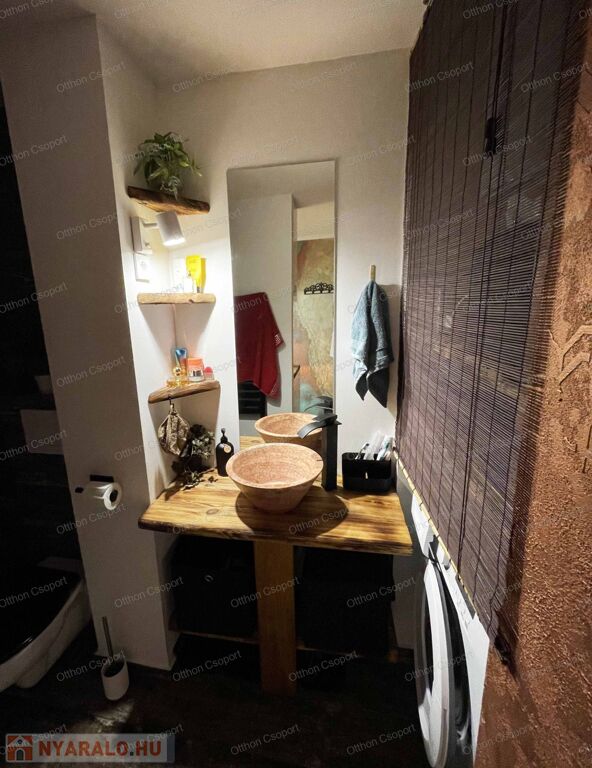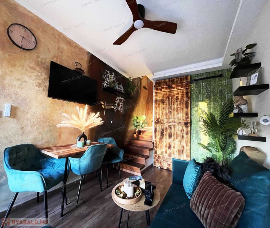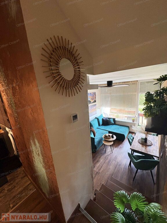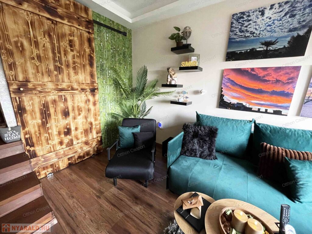 Egyedi tervezésű, prémium design-apartman eladó Balatonalmádi Káptalanfüred részén társasüdülőben, a teraszról balatoni panorámával, gondozott, közös használatú kerttel, napozóval, grillezővel, kiülővel, közúton 600 méterre a hangulatos, családias Káptalanfüred strandtól, gyalog se több néhány percnél. Saját, zárható, árnyékolt kocsibeállóval, parkolóval közvetlenül a ház mellett (amely részét képezi az adásvételnek). Műszakilag tökéletesen felújított és tervező által megdizájnolt állapotban, tehát teljesen új elektromos és vízhálózattal, teljes felületén elektromos fűtőszálas padlófűtéssel, szobatermosztáttal. Dél-keleti tájolású, szépen árnyékolt, földszinti nyaraló, a teraszról kijárással a gyönyörű kertre, melyet kertész gondoz. Alapterülete 25,3 m2, egy nappali/háló kihúzható kanapéval, + egy vendég-fotelágy, 3 személy részére kényelmes alvási lehetőséggel, ill. 3 személyre szabott ebédlőasztallal, tágas gardróbbal. Teljeskörűen berendezett, új konyha rész új háztartási gépekkel, önálló fürdőszoba tusolóval, wc-vel, 50 literes bojlerrel. Terasz 5 m2, 2+2 személy számára kiülési lehetőséggel, balatoni panorámával. A legtöbb bútor, ill. berendezés egyedileg tervezve és gyártva borovi fenyőből a lehető legoptimálisabb helykihasználással. Csodás panoráma nyílik bentről is a nappaliból a Balatonra a hatalmas üvegfelületen keresztül. Az árban foglaltatik az összes berendezési tárgy és bútor okostévével, hűtőszekrénnyel, mosógéppel, dísztárgyakkal, mindennel együtt. Kiadásra, szállásoltásra, turizmusra remek megtérülésű befektetésként, avagy saját használatra pihenésre, töltődésre, kikapcsolódásra egyaránt kitűnő lehetőség. Ára: 49 M Ft. 06209730443 Igény esetén örömmel megmutatom személyesen, hívjon bátran.
