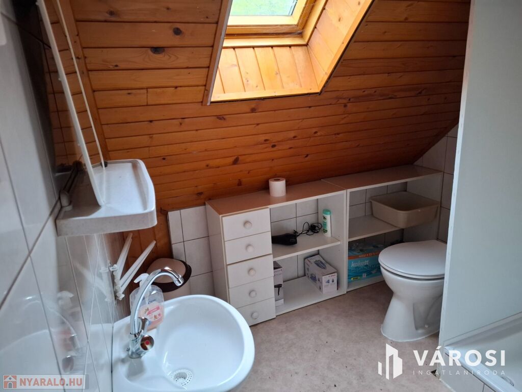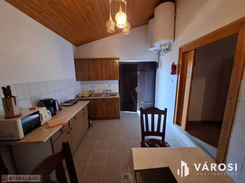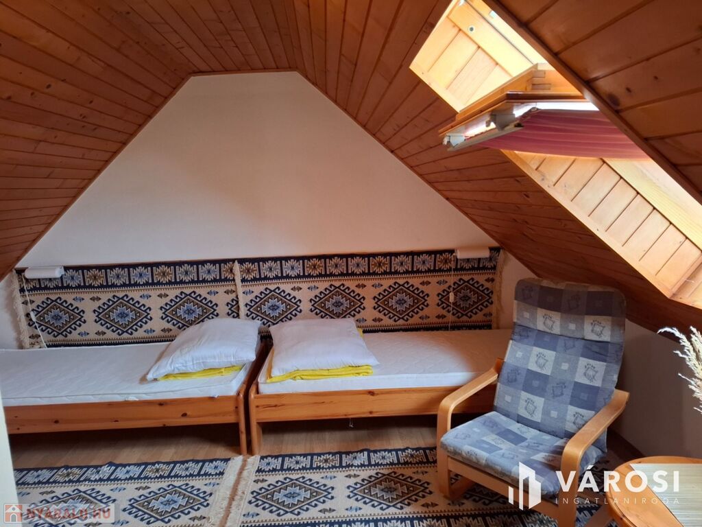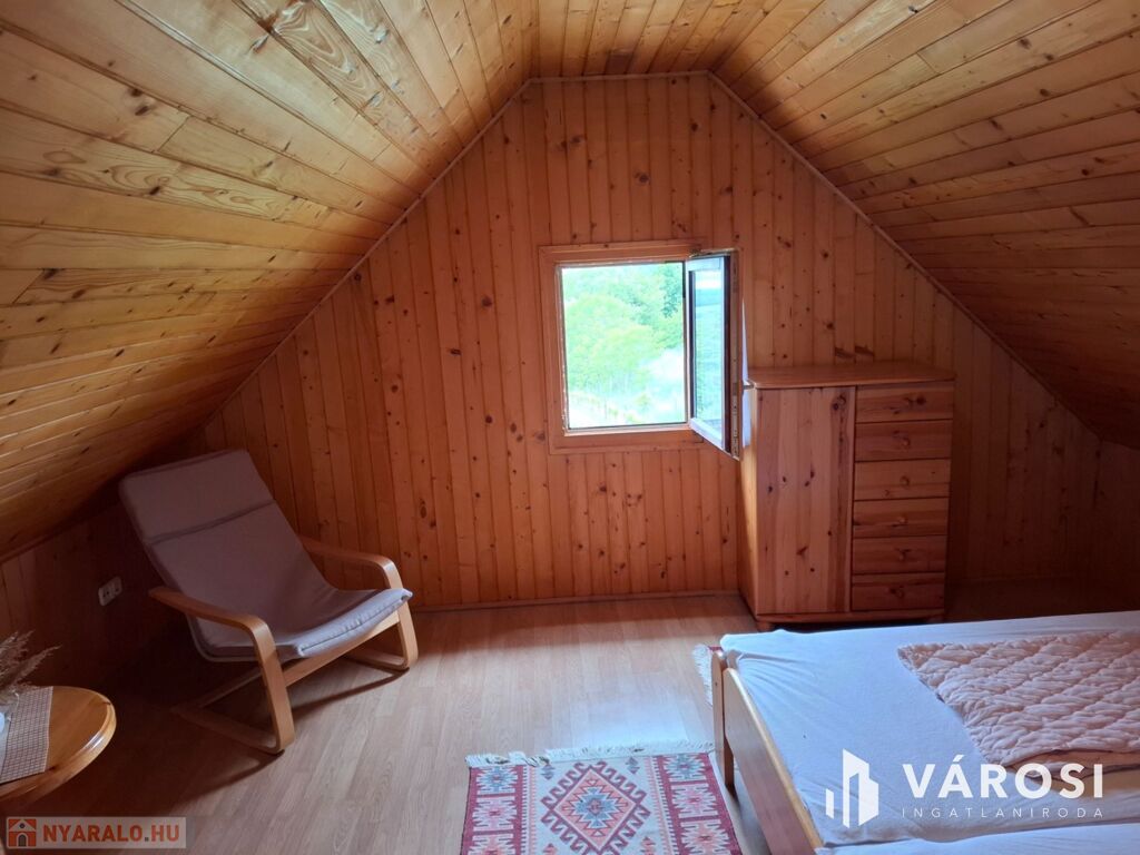 Csendes, zöldövezeti környezetben,3785 m²-es telken található ez a kétszintes, 90 m²-es nyaraló. A földszinten nappali–konyha–étkező, az emeleten két hálószoba, külön fürdő és WC szolgálja a kényelmet. Az ingatlan berendezett, fa zsalugáteres ablakokkal, vezetékes vízzel, szennyvíz-elhelyezéssel, új villamoshálózattal és 3 fázisú árammal rendelkezik.