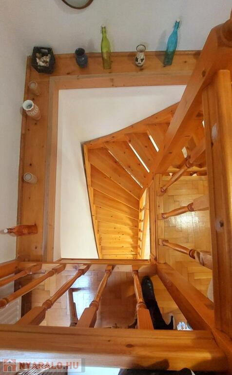 A ház falazata kő és tégla. Az alsó szinten különálló grázs(15m2-gázkazán,mosókamra) nappali(25m2), étkező(20m2 +feljáró az emeletre), konyha(7m2), fürdő-wc(3m2).A felső szinten hálószoba1(16m2), hálószoba2(16m2), hálószoba3(10m2), hálószoba4(10m2), nappali(13m2), fürdőszoba-wc(9m2) és egy erkély(12m2)található.