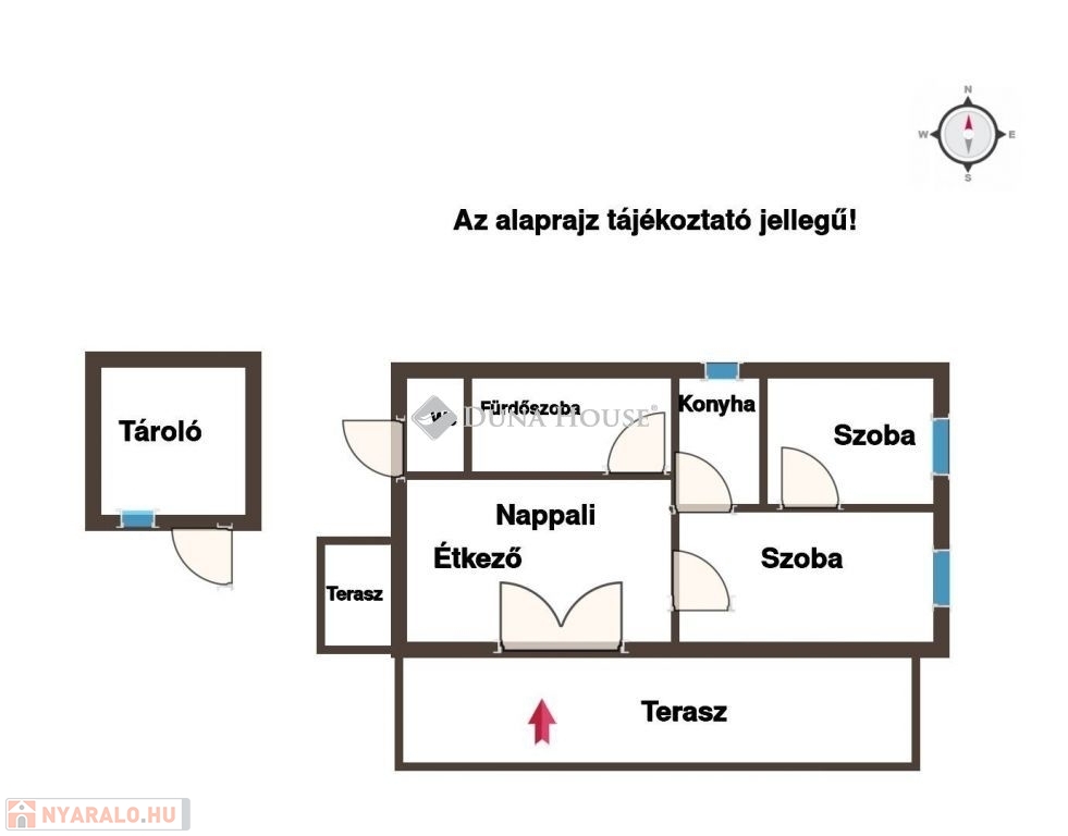Az ingatlan felosztása: szoba, nappali - konyha- étkező, fürdőszoba, külön wc, terasz elosztású.