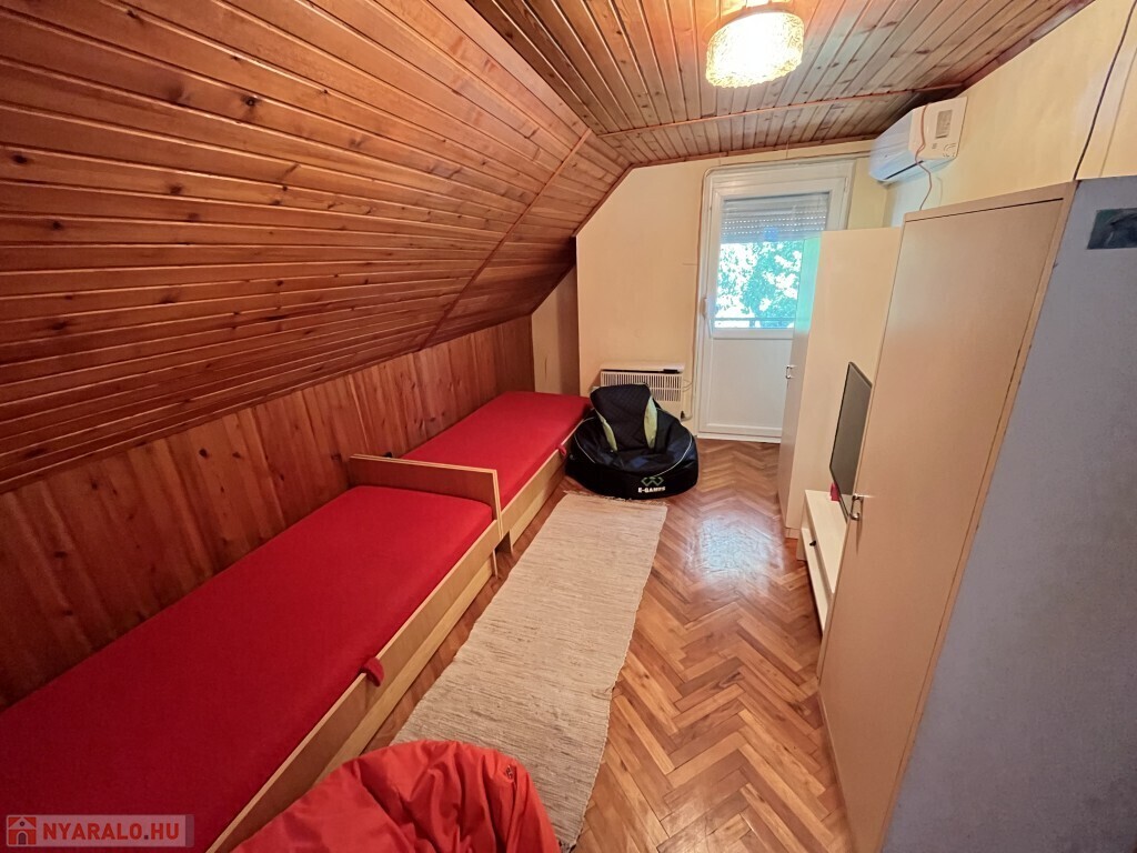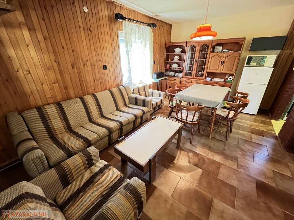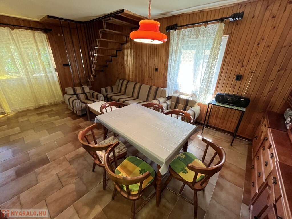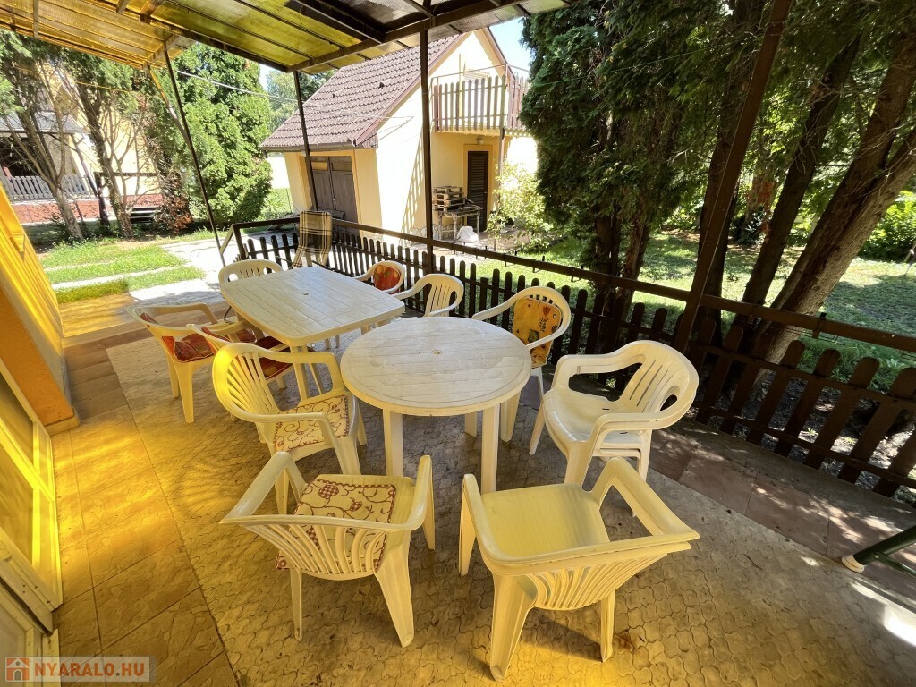 Balatonfenyvesen a vízpart közelében, a strandtól 950 m-re található - 1983-ban épült, akár azonnal is birtokba vehető nyaraló eladó. A 80 m2-es, 2 szintes épület alsó szintjén előszoba-nappali-étkező-főzőfülke beépített konyhával, 1 hálószoba, fürdőszoba-zuhanyzó, wc helyiségek találhatóak, valamint a ház mögött pedig egy hangulatos 19 m2-es fedett terasz található. A tetőtérben 2 szoba - mindkettőből ki lehet lépni az erkélyre -, fürdőszoba-wc kerültek kialakításra. A nyaralóban a fűtés gázkonvektorral, a meleg víz ellátása villanybojlerrel megoldott, az épület teteje Bramac tető és a külső falazatra 10 cm. hőszigetelés került, illetve a tetőtérben mindkét szobában hűtő-fűtő klíma is van. Az udvarban található csónakházként épített 22 m2-es tégla épületben 1 szoba, teakonyha sarok, fürdőszoba-wc kerültek kialakításra, ennek az épületnek a tetőtere igény esetén még beépíthető, illetve egy napozó teraszt alakított ki a tulajdonosa. Az udvarban van még kis 3 m2-es tároló, gépkocsi beálló is van. Telek: 571 m2