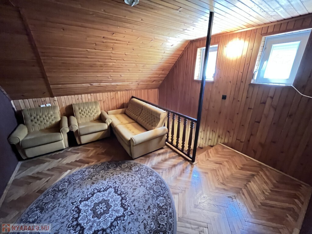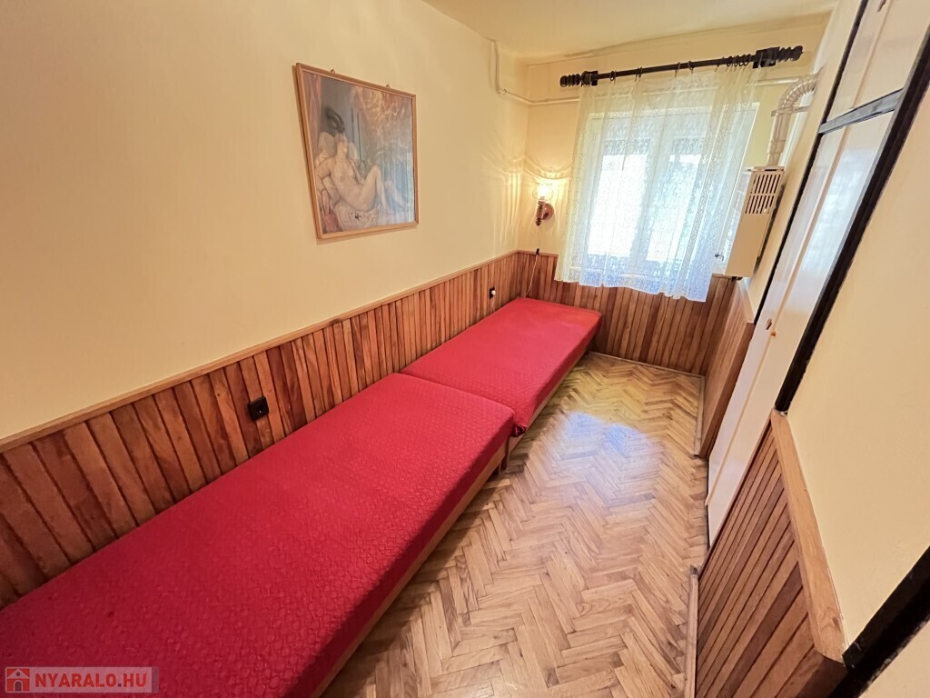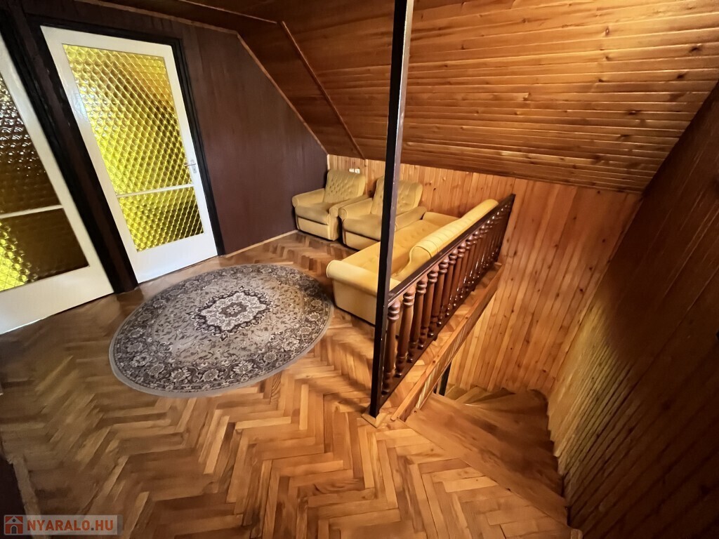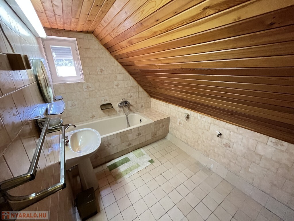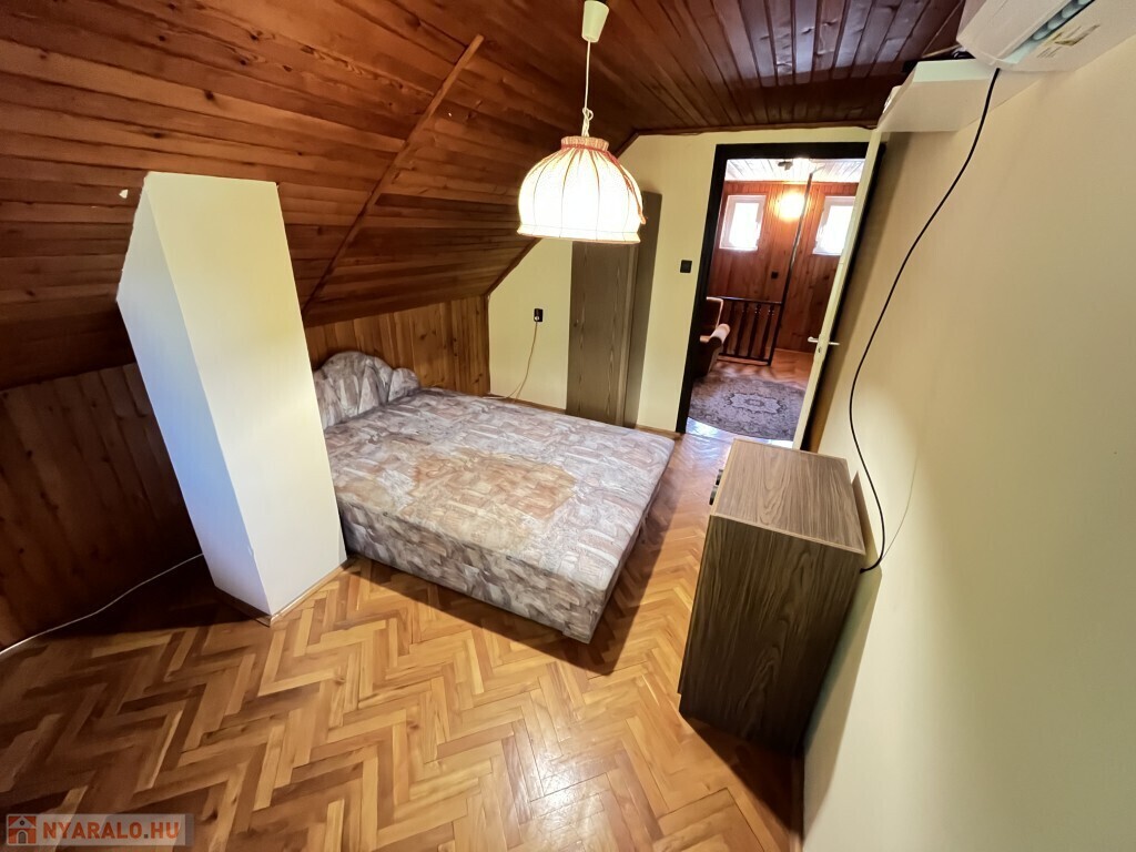 Balatonfenyvesen a vízpart közelében, a strandtól 950 m-re található - 1983-ban épült, akár azonnal is birtokba vehető nyaraló eladó. A 80 m2-es, 2 szintes épület alsó szintjén előszoba-nappali-étkező-főzőfülke beépített konyhával, 1 hálószoba, fürdőszoba-zuhanyzó, wc helyiségek találhatóak, valamint a ház mögött pedig egy hangulatos 19 m2-es fedett terasz található. A tetőtérben 2 szoba - mindkettőből ki lehet lépni az erkélyre -, fürdőszoba-wc kerültek kialakításra. A nyaralóban a fűtés gázkonvektorral, a meleg víz ellátása villanybojlerrel megoldott, az épület teteje Bramac tető és a külső falazatra 10 cm. hőszigetelés került, illetve a tetőtérben mindkét szobában hűtő-fűtő klíma is van. Az udvarban található csónakházként épített 22 m2-es tégla épületben 1 szoba, teakonyha sarok, fürdőszoba-wc kerültek kialakításra, ennek az épületnek a tetőtere igény esetén még beépíthető, illetve egy napozó teraszt alakított ki a tulajdonosa. Az udvarban van még kis 3 m2-es tároló, gépkocsi beálló is van. Telek: 571 m2