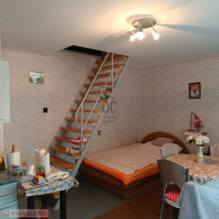 -a hátsó udvari ház: 30 m2 nagyságú: konyha-étkező-nappali, mosdó-WC került kialakításra, felső szinten hálószobával