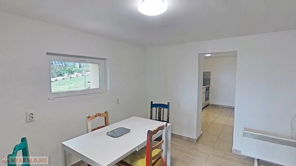 A D-i tájolású, 3 szintes, 106 m2-es, 3 szobás, tégla építésű ikerház félhez 1088 m2-es, enyhén lejtős, körbekerített telek tartozik. Gyümölcsfával, fügefákkal, örökzöld bokrokkal részben beültetett kertje tovább növeli a hely intimitását, valamint a nagysága lehetőséget teremt akár tiny house vagy jurta elhelyezésére.