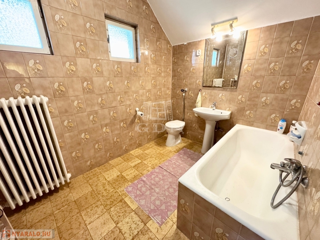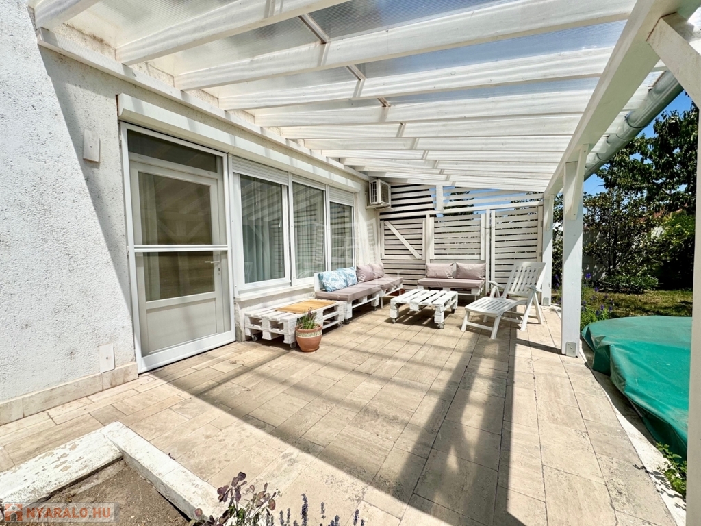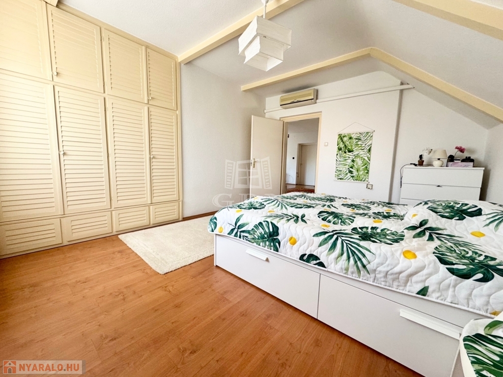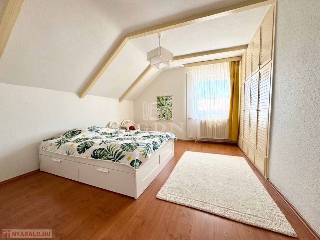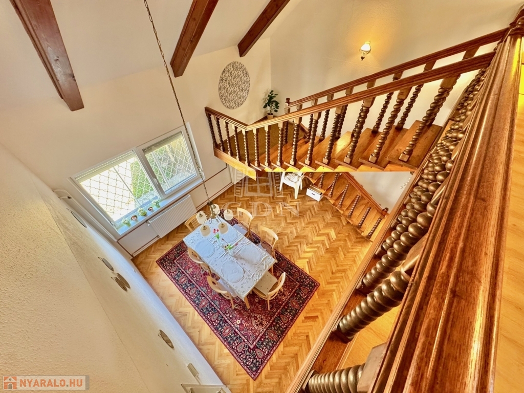 A Balaton északi partjának egyik legszebb városában, Balatonfüreden, kiváló közlekedés és ellátottság mellett, kertvárosi környezetben, 10 perc sétára a vitorlás kikötőtől, és a Tagore sétánytól, 586 m2-es összközműves telken, 1990-ben épült, 190 m2-es lakóterületű, 2 szintes, dupla komfortos, dupla nappalis + 3 hálószobás, a földszinten található nappaliból közvetlen 40 m2 -es teraszkapcsolattal rendelkező, kiváló elosztású, külön nyíló szobás, napos-világos, K-NY-i tájolású, alacsony fenntartású, kombinált gázcirkó és cserépkályha fűtésű, jó állapotú, 2018-ban új thermo ablakokra cserélt, klimatizált, riasztórendszerrel felszerelt családi ház, beépített, gépesített konyhával, nagyméretű tárolóval, garázzsal, úszómedencével, rendezett kerttel, rugalmas költözéssel eladó.