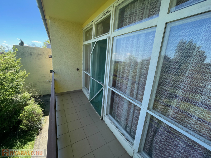 Füred Arács városrészében, a Vadvirág Társasüdülőben vált eladóvá ez a 27 m2-es, erkélyes, egy szobás apartman, melynek erkélyéről balatoni panoráma látható.