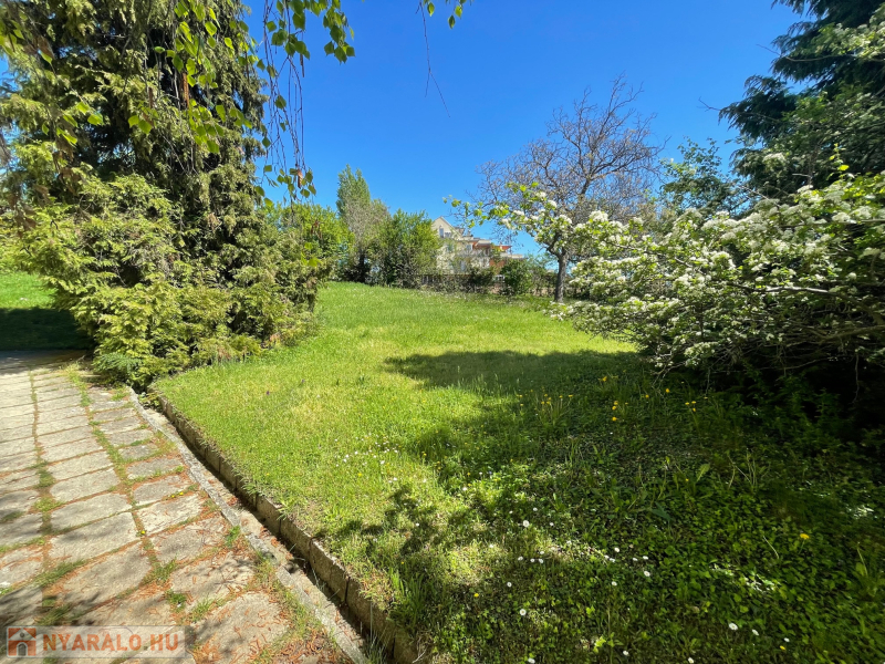 A 2842 m2-es telek parkosított, körbekerített. A kertben sütögetőhely, kis gyermekjátszótér került elhelyezésre.