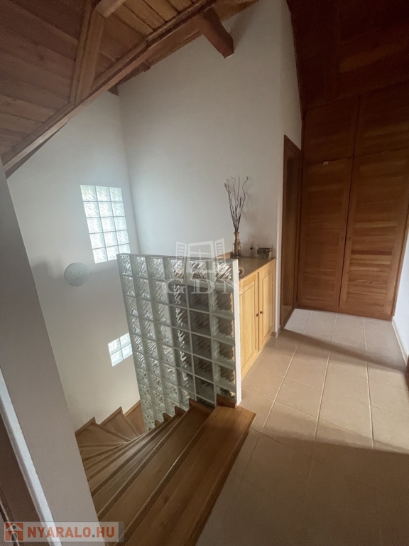 Nyílászárók: spalettás hőszigetelt tölgyfaablakok, mozgás-nyitásérzékelő riasztórendszerrel, kamerákkal.