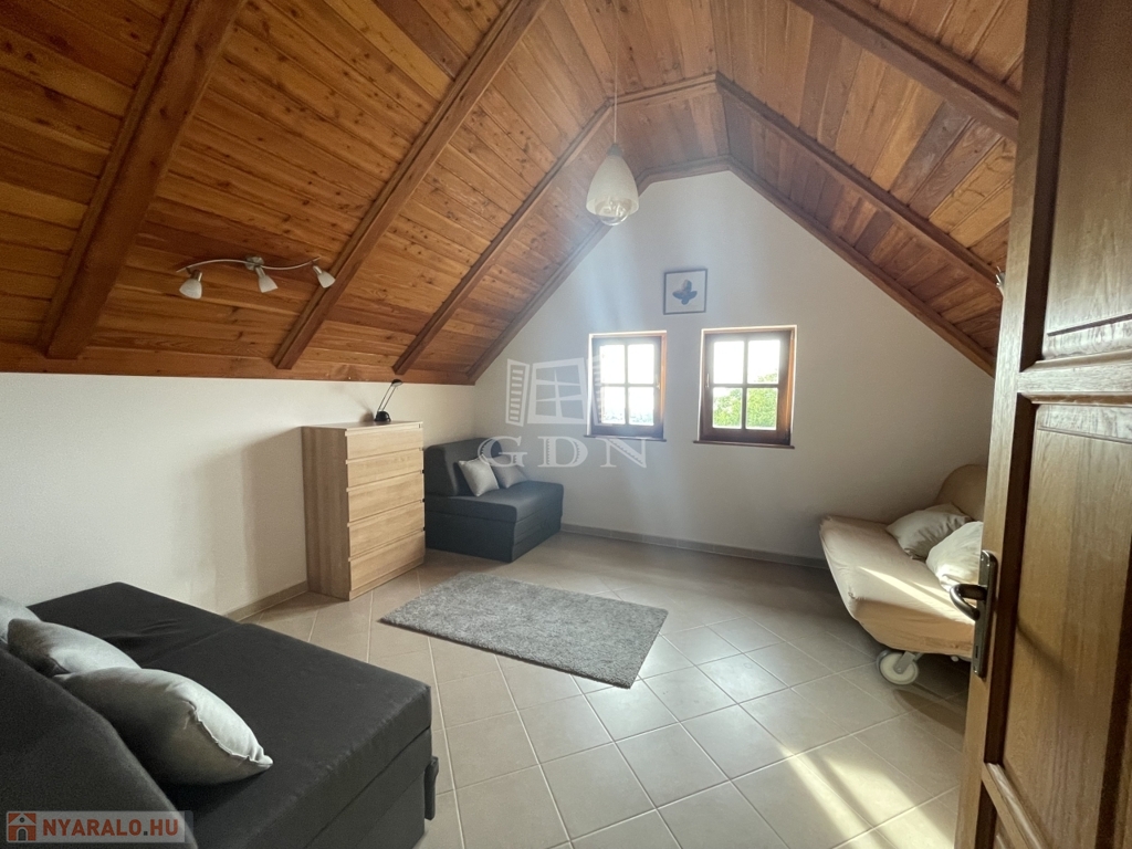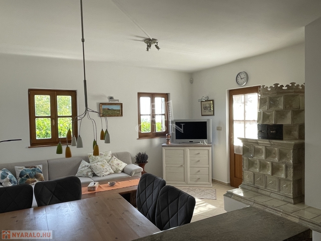 Kiegészítők: cserépkályha, infraszauna, félköríves terasz (25 m²), melynek burkolata felújításra szorul, így lehetőséget biztosítva a további egyéni igények kialakítására.