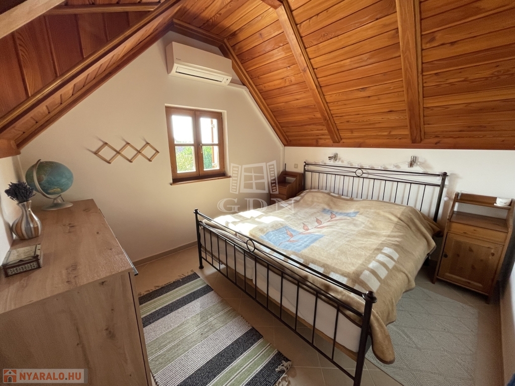 Emelet: 2 hálószoba (20 és 10,2 m²) split klímákkal, sarokkádas fürdő (4,1 m²), külön WC (1,6 m²), tároló