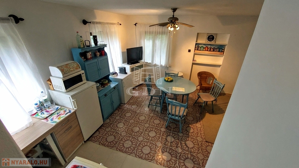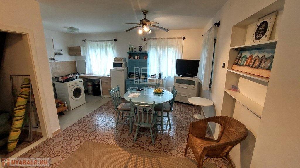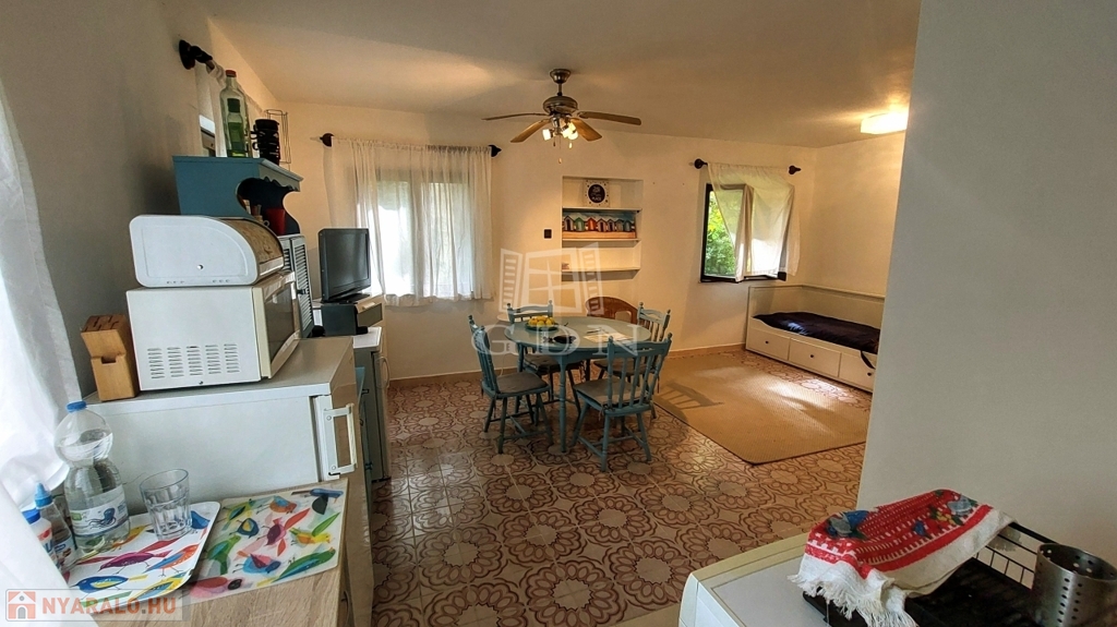 Balatonkeresztúron csendes utcában 525 m2 telken eladó ez jó állapotú ház, amelyet jelenlegi tulajdonosa nyaralónak használ, de alkalmas családi otthonnak is.