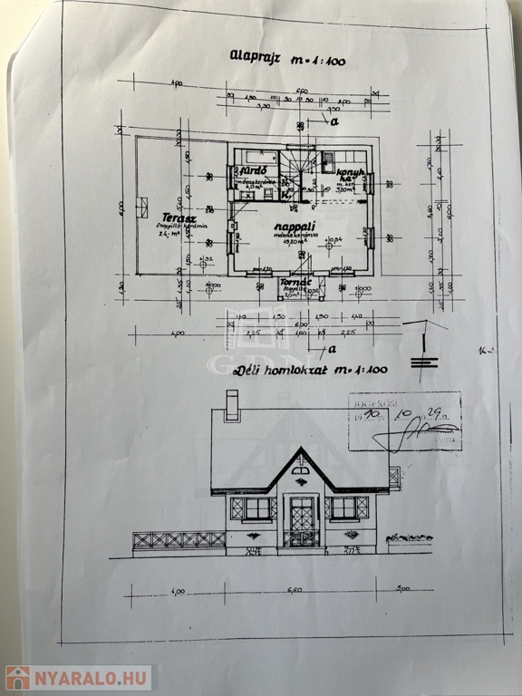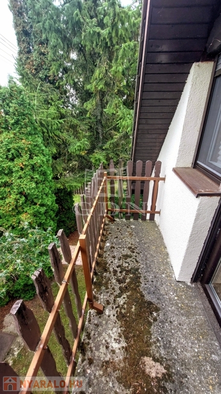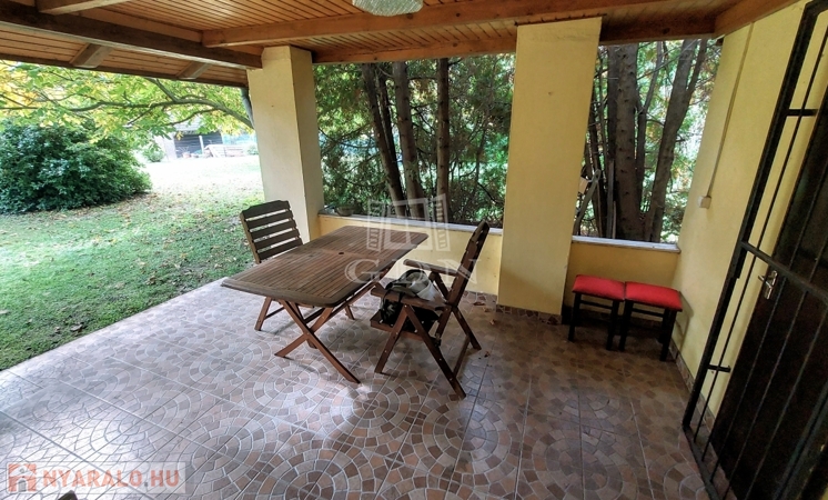 A téglából épült 59 m2-es házat örökzöldek veszik körül bájos, romantikus környezetet teremtve. A szép, rendezett kertben a tuják mellett számos gyümölcsfát is találunk. A nagy, fedett terasz összeköti a kertet és a házat, kiváló helyszín családi, baráti összejövetelkhez. Innen nyílik az egy légterű nappali-konyha-étkező, ahonnan nyílik a fürdőszoba és innen lehet felmenni a két fenti hálóhoz.