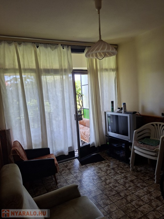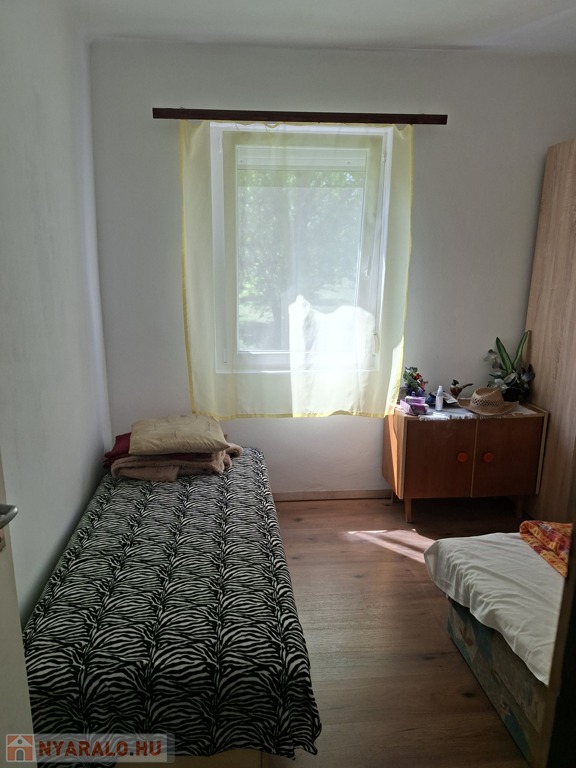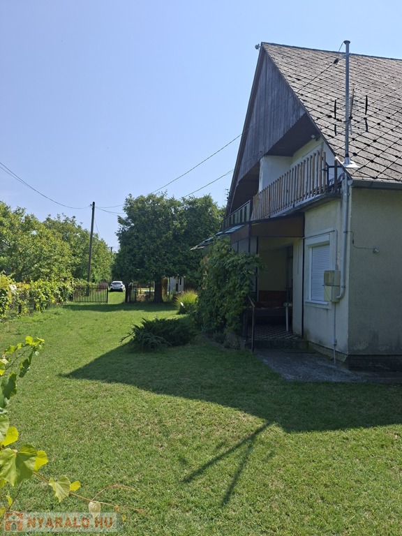 Eladó Balatonmáriafürdő csendes részén egy ikernyaraló fele. Az épület földszintjén konyha, nappali, fürdőszoba, különálló WC és 1 hálószoba található. Az emeleten 2 hálószoba, 1 WC, és 1 erkély található. A nyílászárók nemrégiben műanyagra lettek cserélve. Az alsó szint klimatizált. Az udvar rendezett, egy autó részére fedett beàllóval rendelkezik.