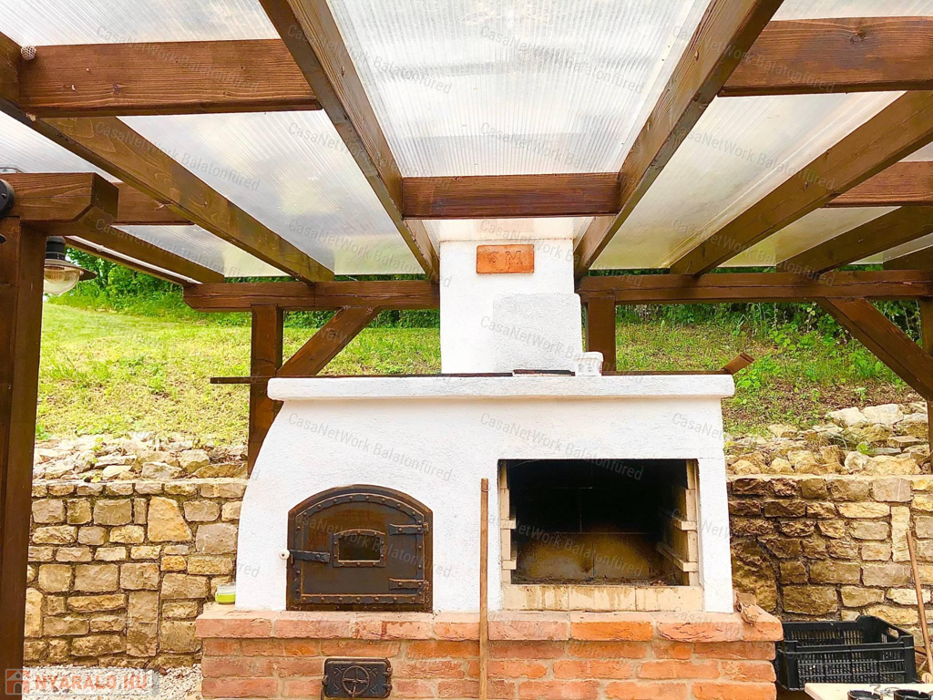 A nyaraló közel 70 m2 terasza somlói terméskőből kirakva, támfallal, nyári kemencével, grillezővel, bográcsozóval...ide még egy jakuzzi is elfér!