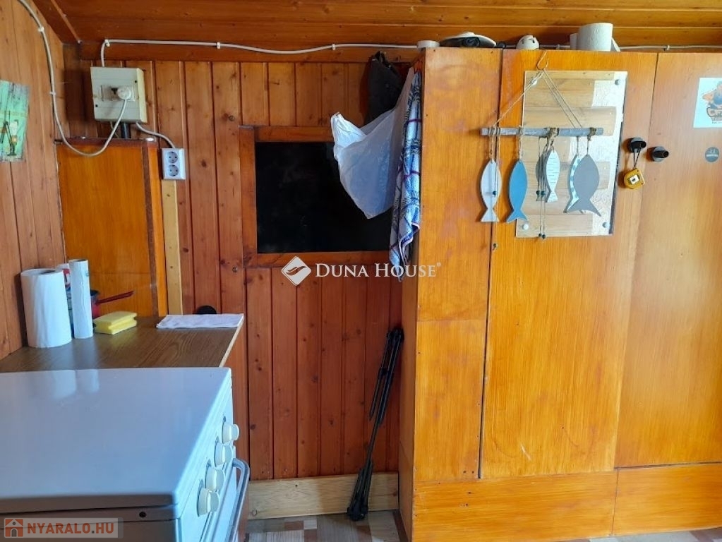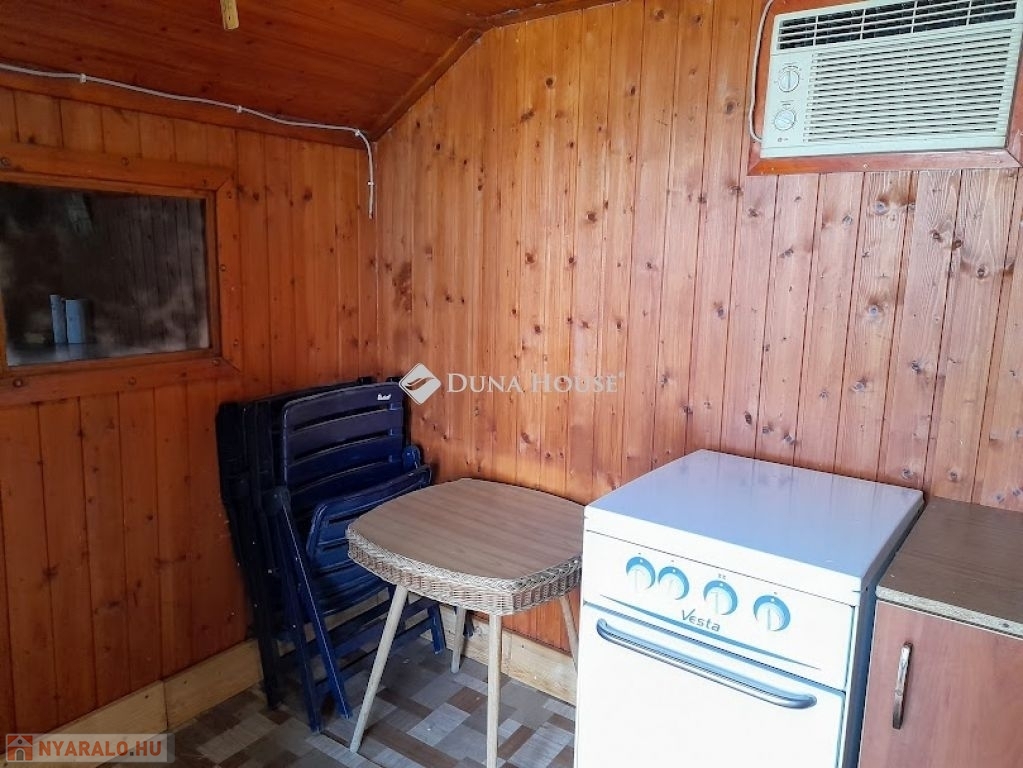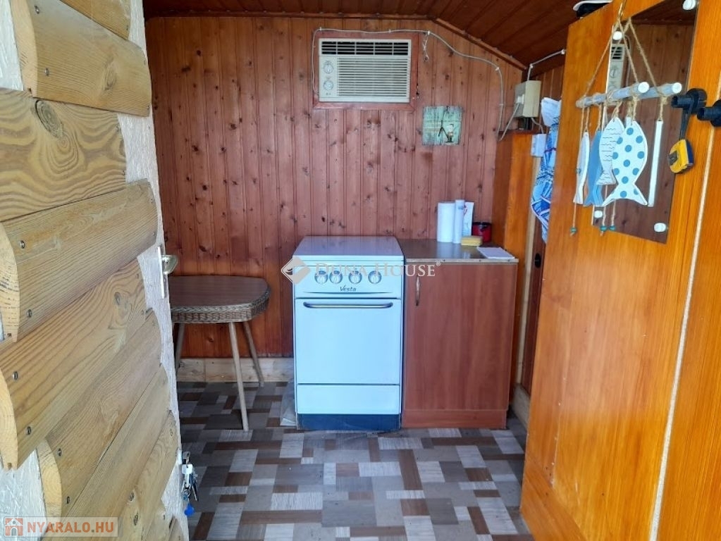 A telken egy klimatizált kis faház található, amely ideális akár több napos horgászatokra is. A fedett terasz tökéletes pihenéshez, beszélgetéshez, vagy egyszerűen csak a tó látványának élvezetéhez.