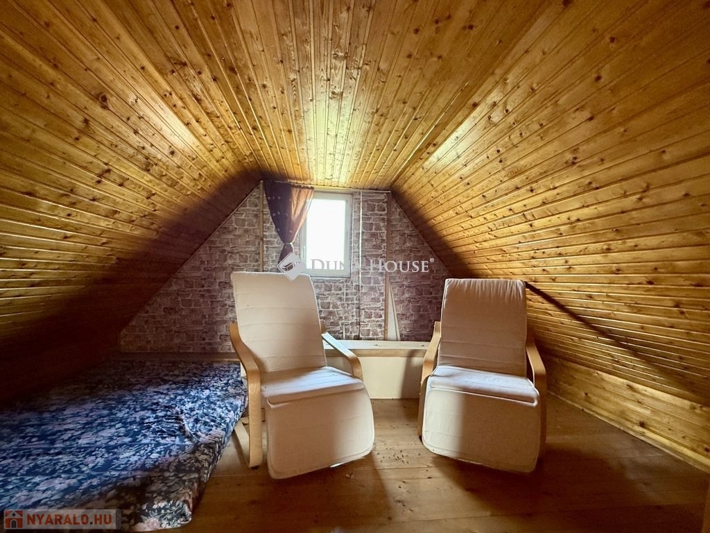 Az 1988-ban épült, lakható zártkerti ingatlan alapterülete 27 m2, plusz a padlástér is beépítésre került, tovább növelve ezzel a rendelkezésre álló lakóterületet.A kert csendes és nyugodt környezetet biztosít, elérhető közelségben a városi élettől, de mégis távol a város zajától.
