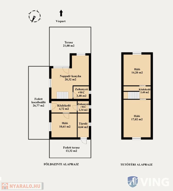 A nyaralóban két külön bejáratú rész került kialakításra. Az egyik földszint+tetőteres, nappali+2 hálós, a másik, kisebb, földszinten található rész egy hálóval rendelkezik. Mindkét részben saját zuhanyzó és WC került kialakításra, így az ingatlan akár két család részére is megfelelő, külön szállást biztosít! Az épület mindhárom szobája klímával felszerelt, így biztosítva a komfortos pihenést az év minden szakaszában!