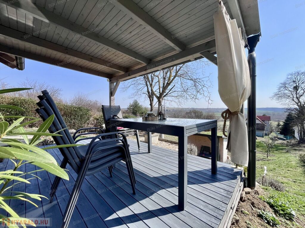 Bozsok egyik legcsendesebb, legszebb részén vált eladóvá egy 2021-ben épült, minden részletében igényes, újszerű nyaraló. A 859 m²-es, gondozott területen fekvő ingatlanból zavartalan kilátás nyílik a környező dombokra, biztosítva a tökéletes intimitást.