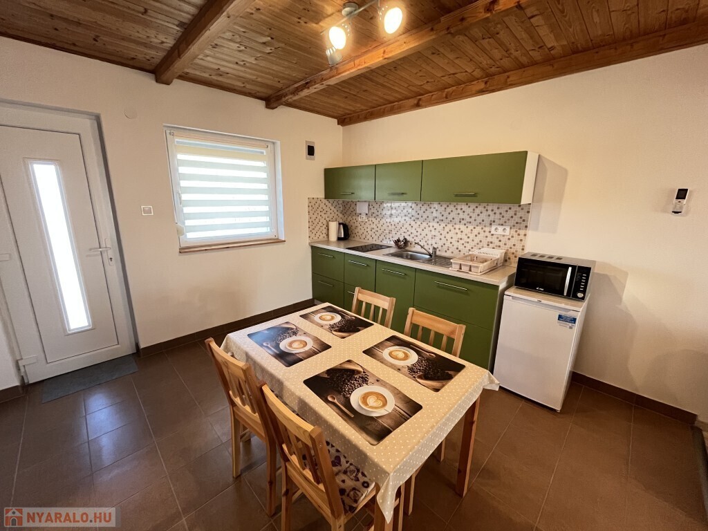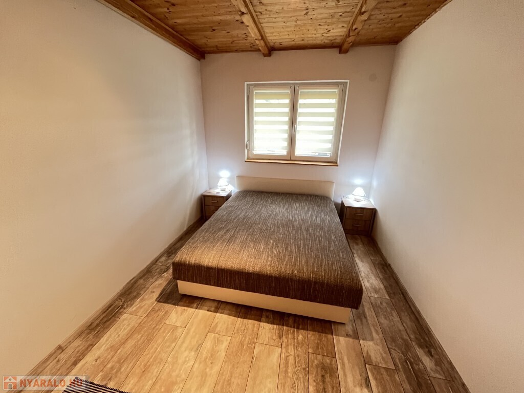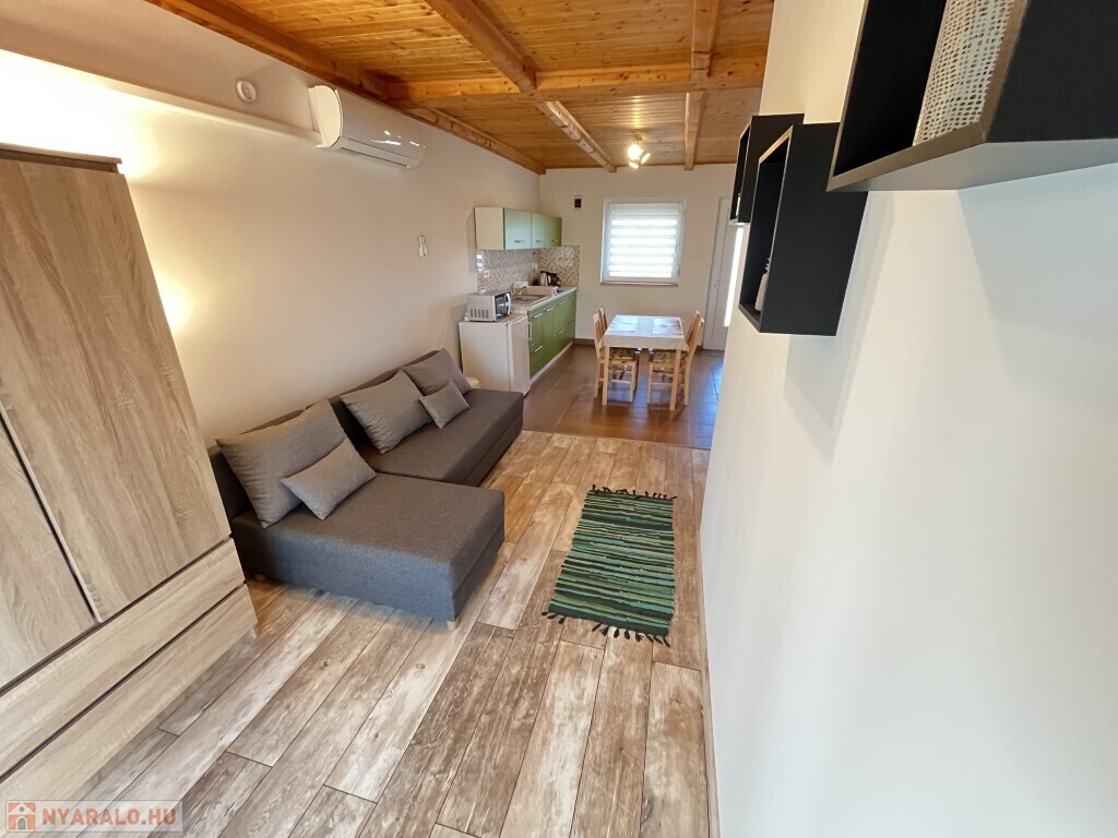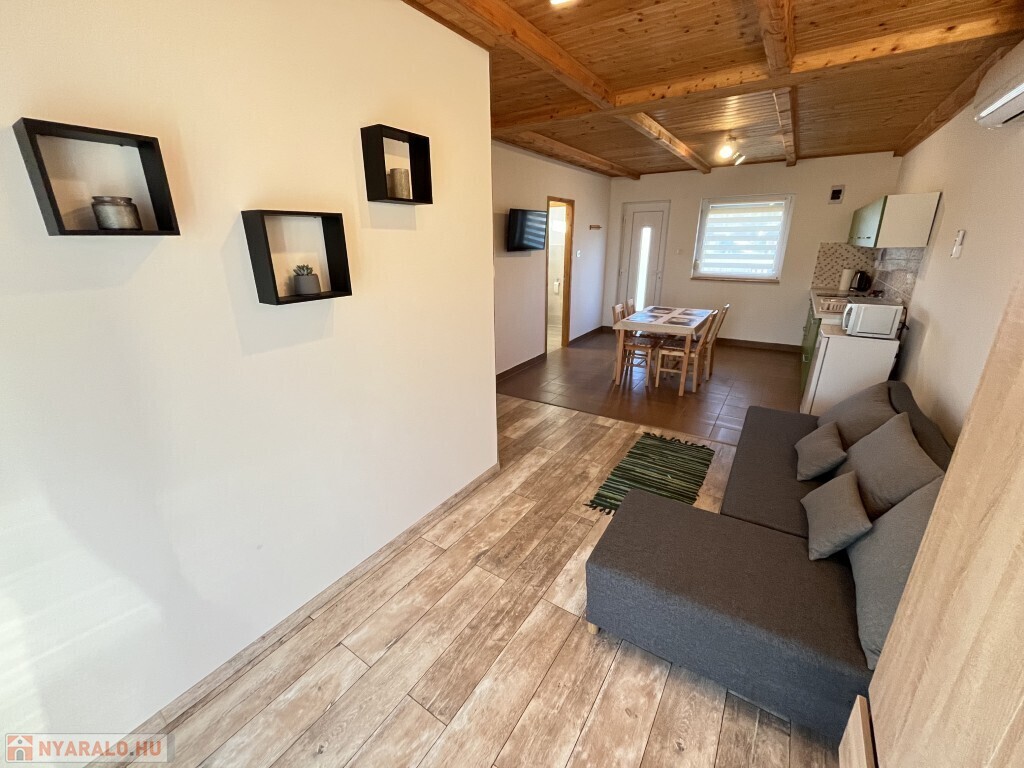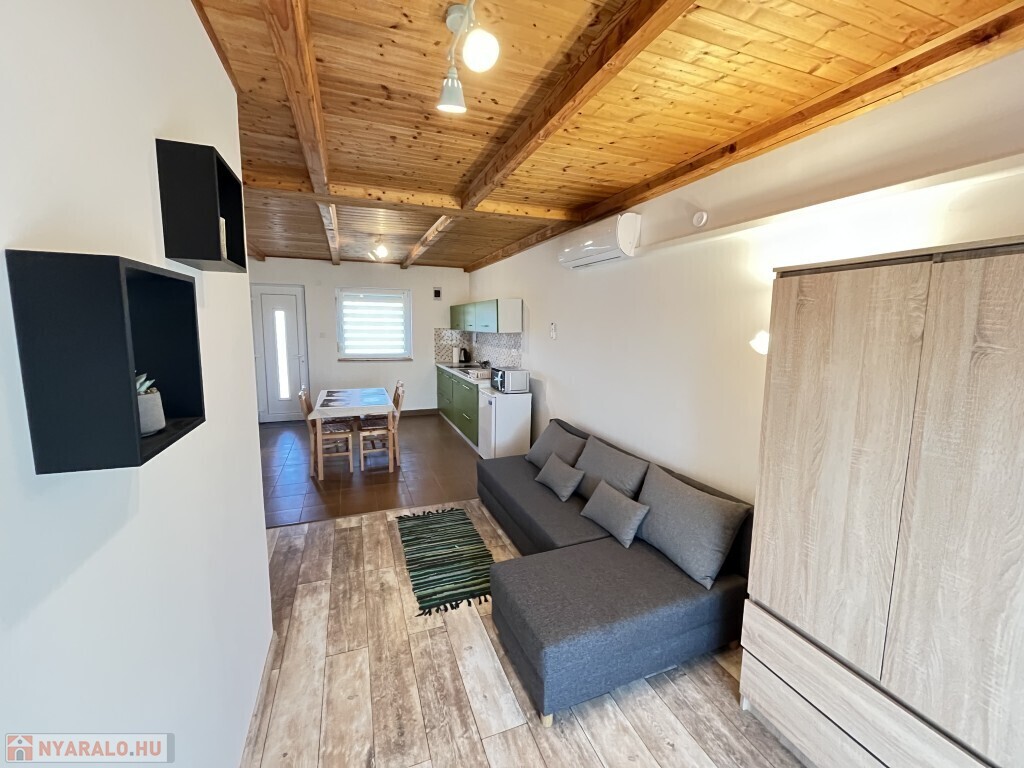 Buzsákon, Csisztafürdőn - külföldiek által kedvelt Balaton közeli településen - a Muskátli utcában, belterületi övezetben található, 2019-ben épület 76,72 m2-es újszerű állapotú üdülőház - eladó. Az épület 2 db 38,36 m2-es apartman. Mindkét apartmanban nappali-konyha-étkező, félszoba, fürdőszoba-wc, terasz helyiségek találhatóak. A telekre az apartmanokhoz 1 db vízóra és 1 db 32A. villanyóra került bekötésre. Az apartmanok fűtése és hűtése klímával, a meleg víz villanybojler megoldott, amelyet 2,5 kw. napelemes rendszer támogat, a szennyvíz emésztő gödörbe szikkasztón keresztül folyik. Mindkét apartmanhoz tartozik kocsibeálló, az udvaron szerszámos tároló és kerti bográcsozó, sütögető került elhelyezésre és leanderek, argentin selyemakácfa és törpe gránátalma bokor teszi hangulatossá a hátsó zöld területet, amely teljesen körbekerített. Az épületre külső 5 cm. szigetelés, a födémre 20 cm. üveggyapot lett elhelyezve. Az üdülőház befektetésre is kiválóan alkalmas, 300 méterre található a kisvasút állomása, 5 km.-re fekszik Fonyód, amit aszfaltos úton lehet megközelíteni, illetve 800 méterre található a gyógyfürdő, megépítették a napelemes parkot és egy sportlövészeti terület áll rendelkezésre akár versenyek céljából is. Telek: 492 m2