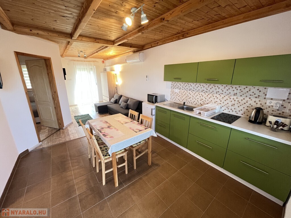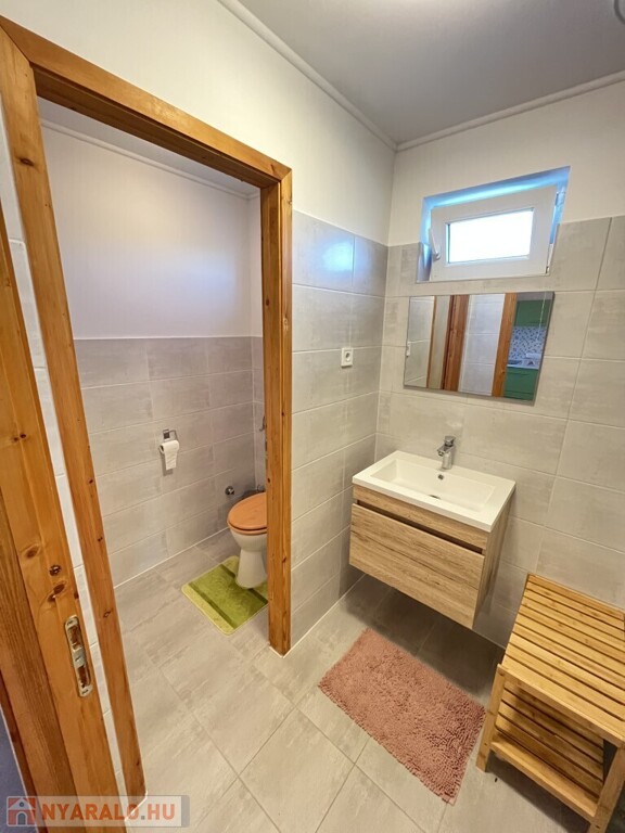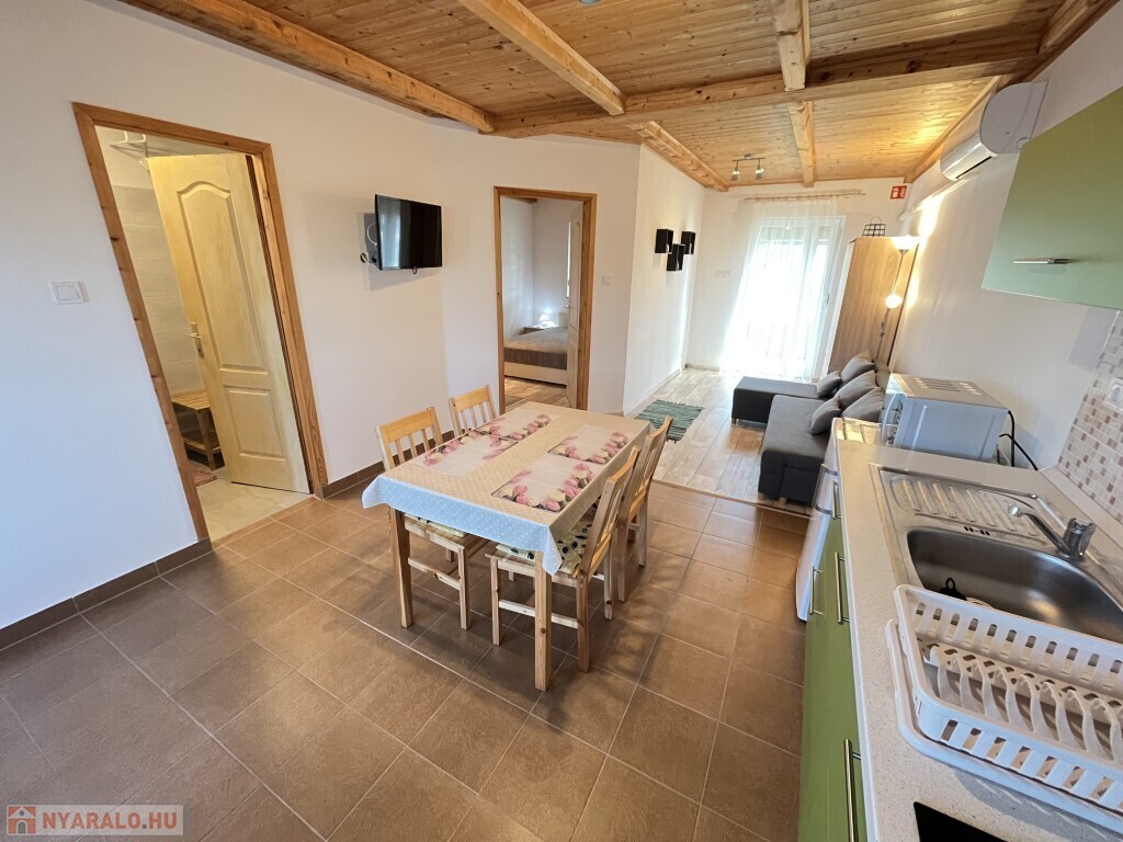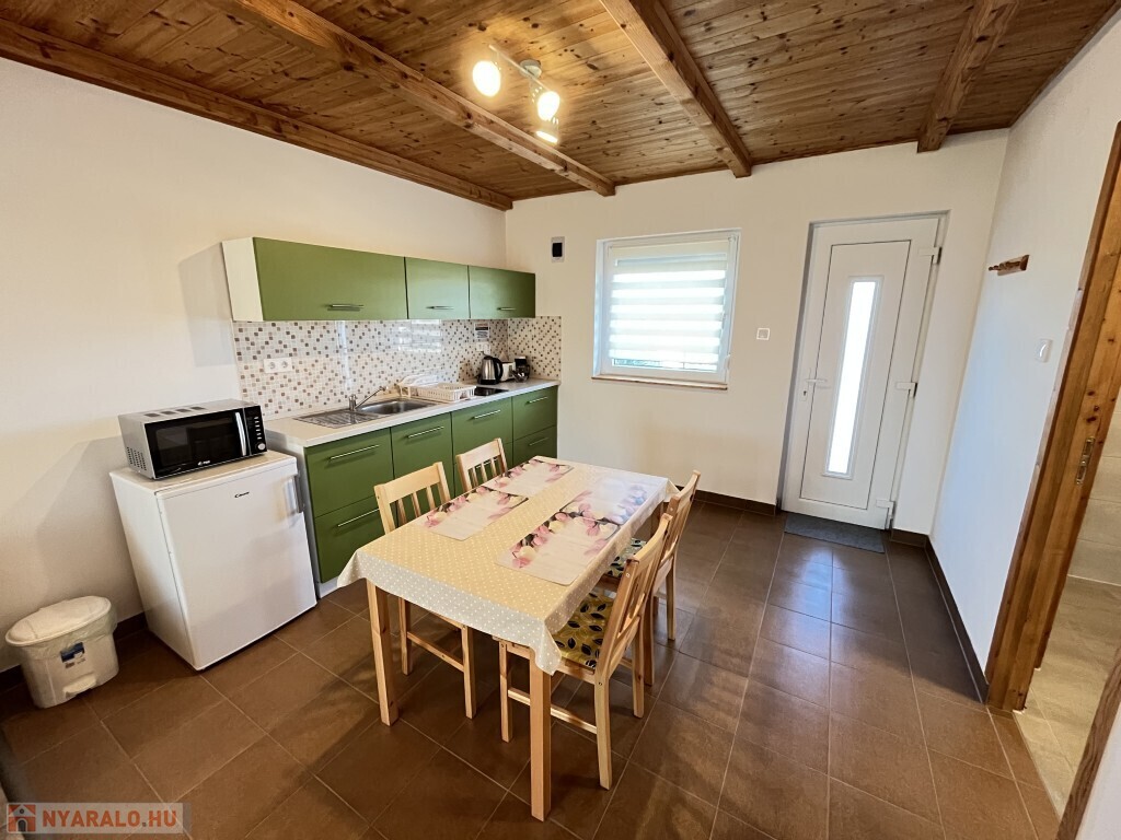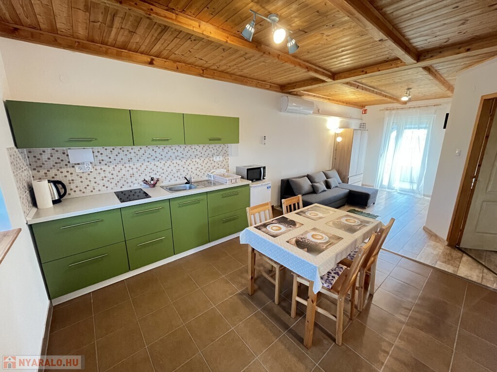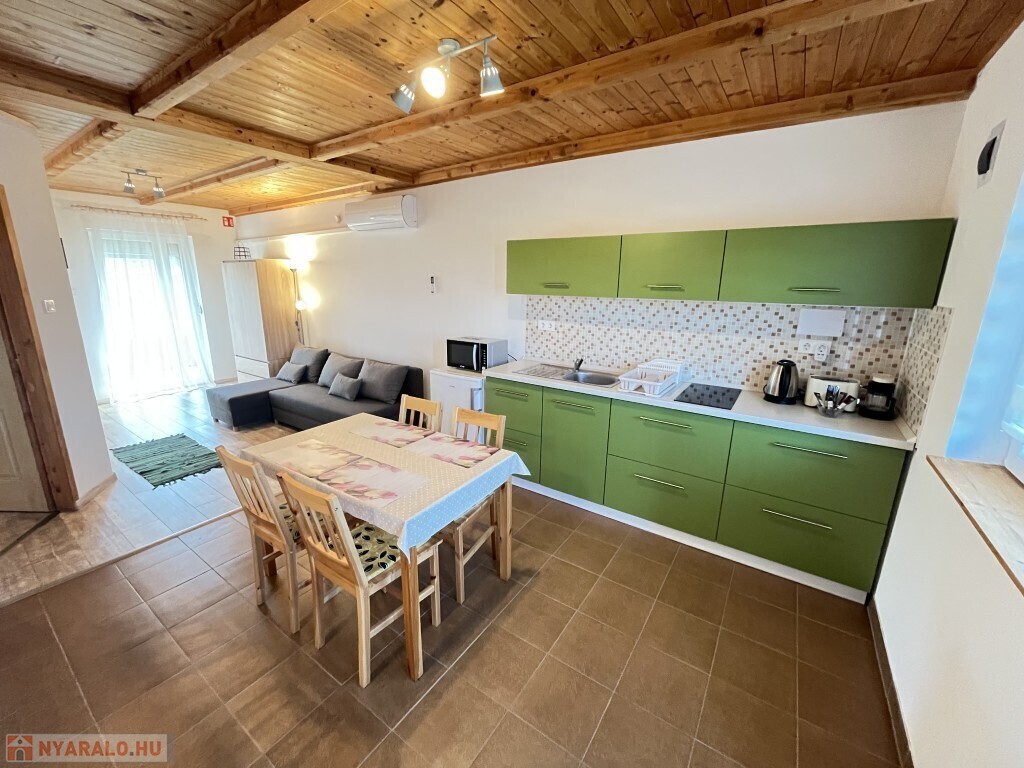 Buzsákon, Csisztafürdőn - külföldiek által kedvelt Balaton közeli településen - a Muskátli utcában, belterületi övezetben található, 2019-ben épület 76,72 m2-es újszerű állapotú üdülőház - eladó. Az épület 2 db 38,36 m2-es apartman. Mindkét apartmanban nappali-konyha-étkező, félszoba, fürdőszoba-wc, terasz helyiségek találhatóak. A telekre az apartmanokhoz 1 db vízóra és 1 db 32A. villanyóra került bekötésre. Az apartmanok fűtése és hűtése klímával, a meleg víz villanybojler megoldott, amelyet 2,5 kw. napelemes rendszer támogat, a szennyvíz emésztő gödörbe szikkasztón keresztül folyik. Mindkét apartmanhoz tartozik kocsibeálló, az udvaron szerszámos tároló és kerti bográcsozó, sütögető került elhelyezésre és leanderek, argentin selyemakácfa és törpe gránátalma bokor teszi hangulatossá a hátsó zöld területet, amely teljesen körbekerített. Az épületre külső 5 cm. szigetelés, a födémre 20 cm. üveggyapot lett elhelyezve. Az üdülőház befektetésre is kiválóan alkalmas, 300 méterre található a kisvasút állomása, 5 km.-re fekszik Fonyód, amit aszfaltos úton lehet megközelíteni, illetve 800 méterre található a gyógyfürdő, megépítették a napelemes parkot és egy sportlövészeti terület áll rendelkezésre akár versenyek céljából is. Telek: 492 m2