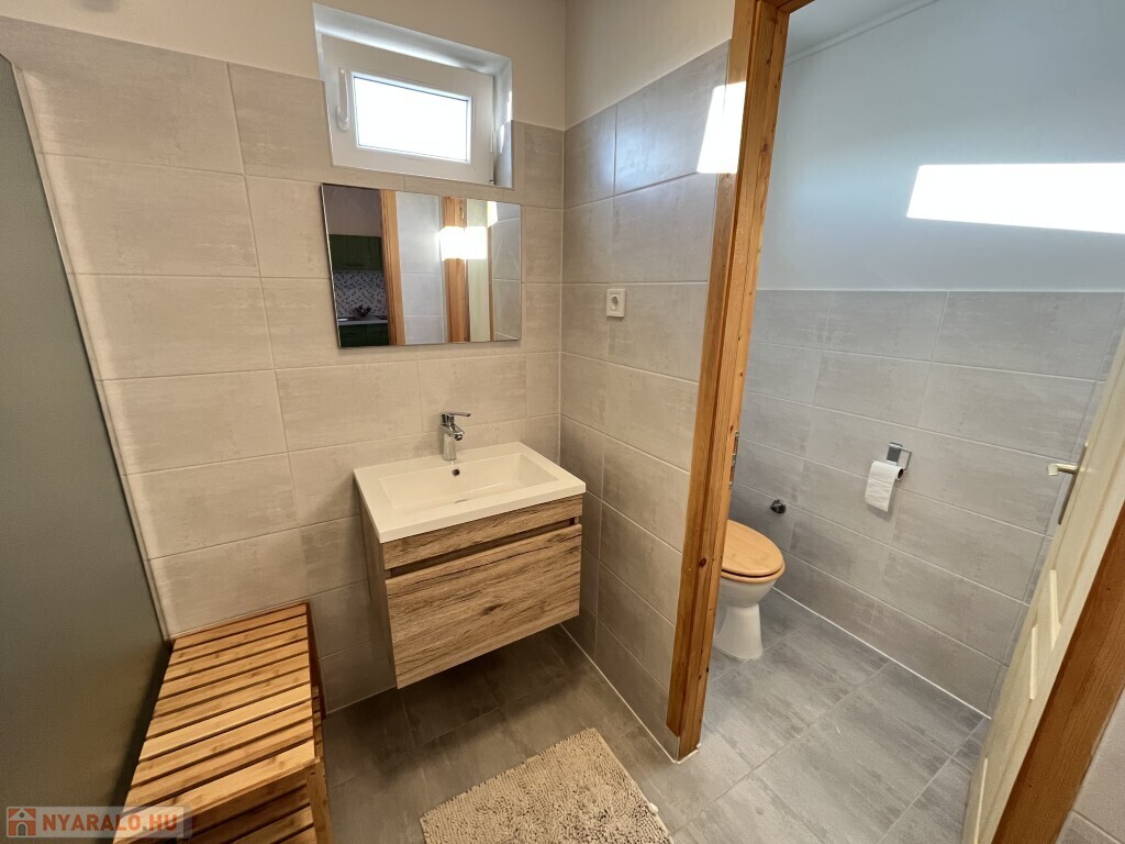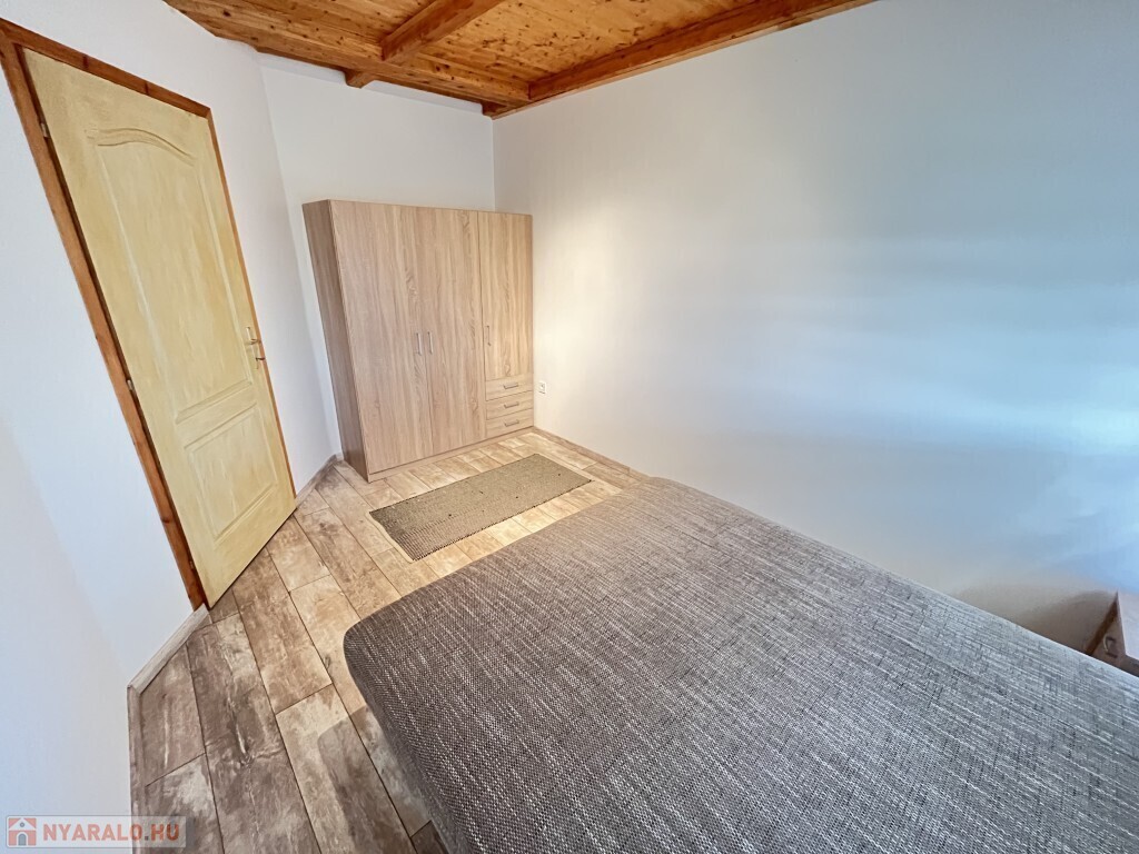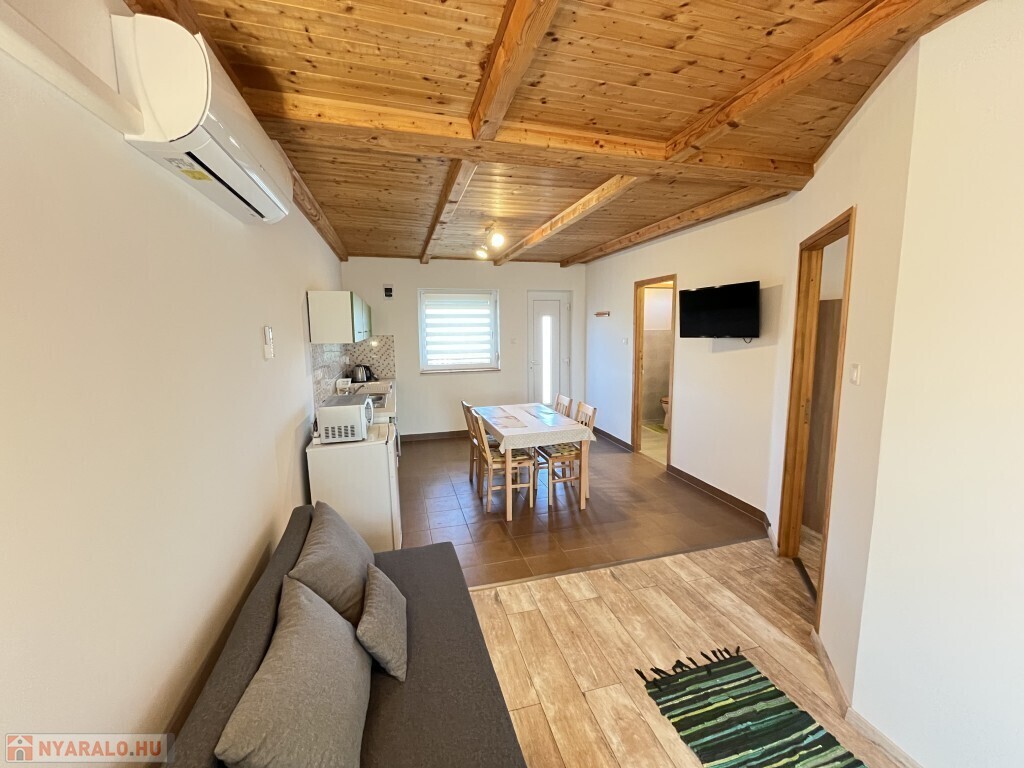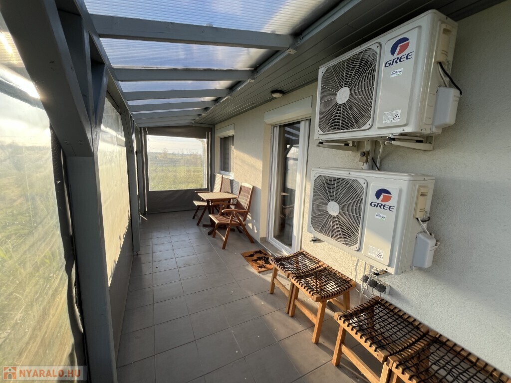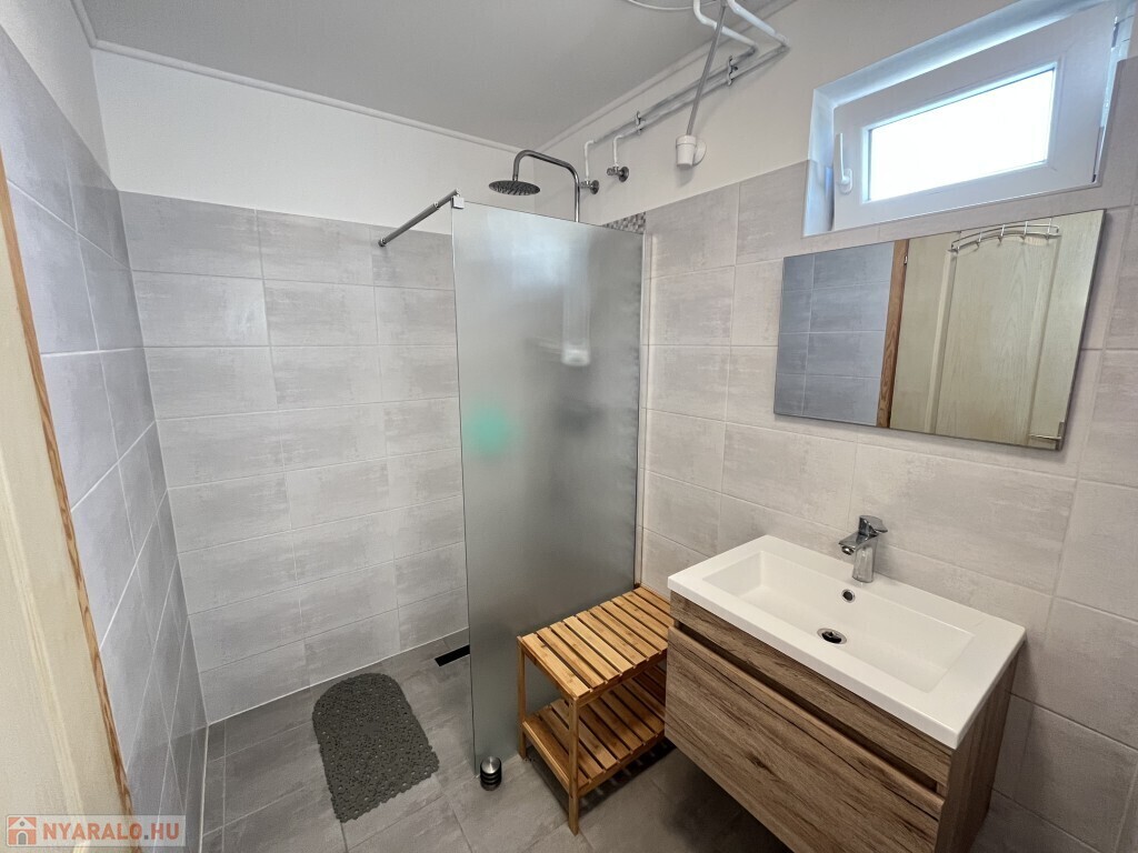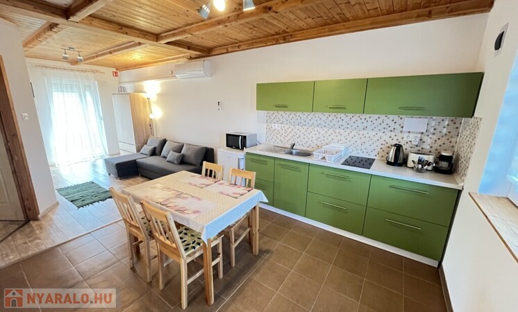 Buzsákon, Csisztafürdőn - külföldiek által kedvelt Balaton közeli településen - a Muskátli utcában, belterületi övezetben található, 2019-ben épület 76,72 m2-es újszerű állapotú üdülőház - eladó. Az épület 2 db 38,36 m2-es apartman. Mindkét apartmanban nappali-konyha-étkező, félszoba, fürdőszoba-wc, terasz helyiségek találhatóak. A telekre az apartmanokhoz 1 db vízóra és 1 db 32A. villanyóra került bekötésre. Az apartmanok fűtése és hűtése klímával, a meleg víz villanybojler megoldott, amelyet 2,5 kw. napelemes rendszer támogat, a szennyvíz emésztő gödörbe szikkasztón keresztül folyik. Mindkét apartmanhoz tartozik kocsibeálló, az udvaron szerszámos tároló és kerti bográcsozó, sütögető került elhelyezésre és leanderek, argentin selyemakácfa és törpe gránátalma bokor teszi hangulatossá a hátsó zöld területet, amely teljesen körbekerített. Az épületre külső 5 cm. szigetelés, a födémre 20 cm. üveggyapot lett elhelyezve. Az üdülőház befektetésre is kiválóan alkalmas, 300 méterre található a kisvasút állomása, 5 km.-re fekszik Fonyód, amit aszfaltos úton lehet megközelíteni, illetve 800 méterre található a gyógyfürdő, megépítették a napelemes parkot és egy sportlövészeti terület áll rendelkezésre akár versenyek céljából is. Telek: 492 m2