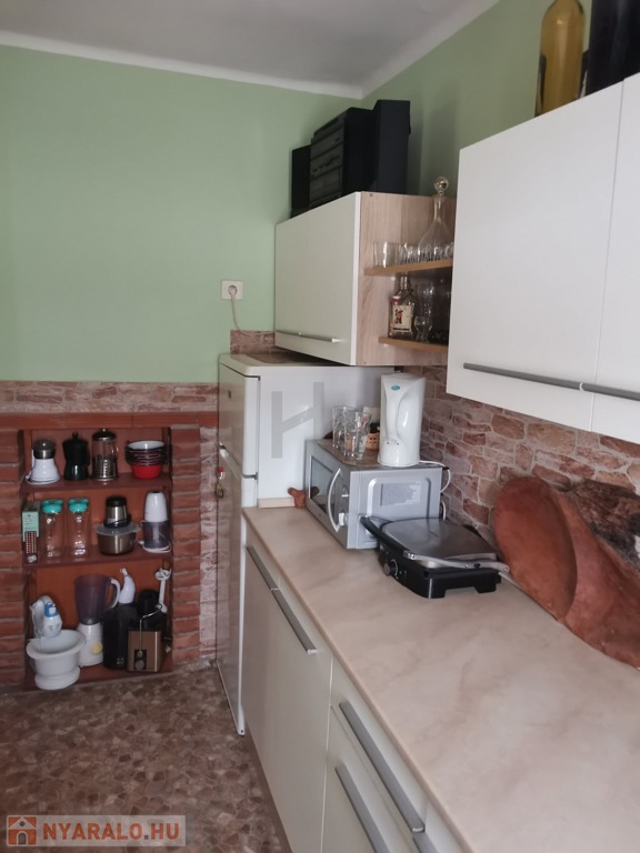 -a 60 m2-es téglaépületben a földszinten nappali, konyha