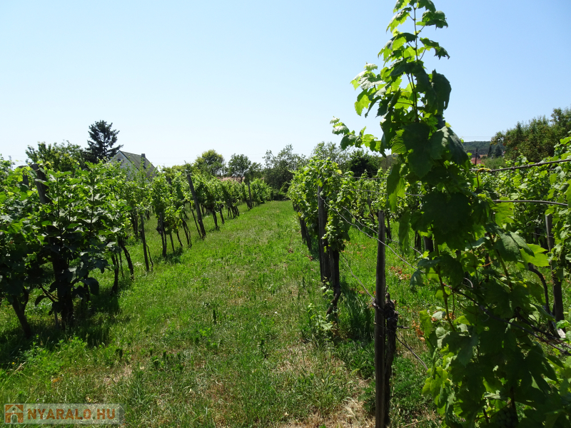 1977-ben épült, 95 m2-es, 2 szobás, kétszintes(+pince) nyaralóépület vált eladóvá egy 2673 m2-es (30 m utcafronti szélességű), szőlővel telepített telken.