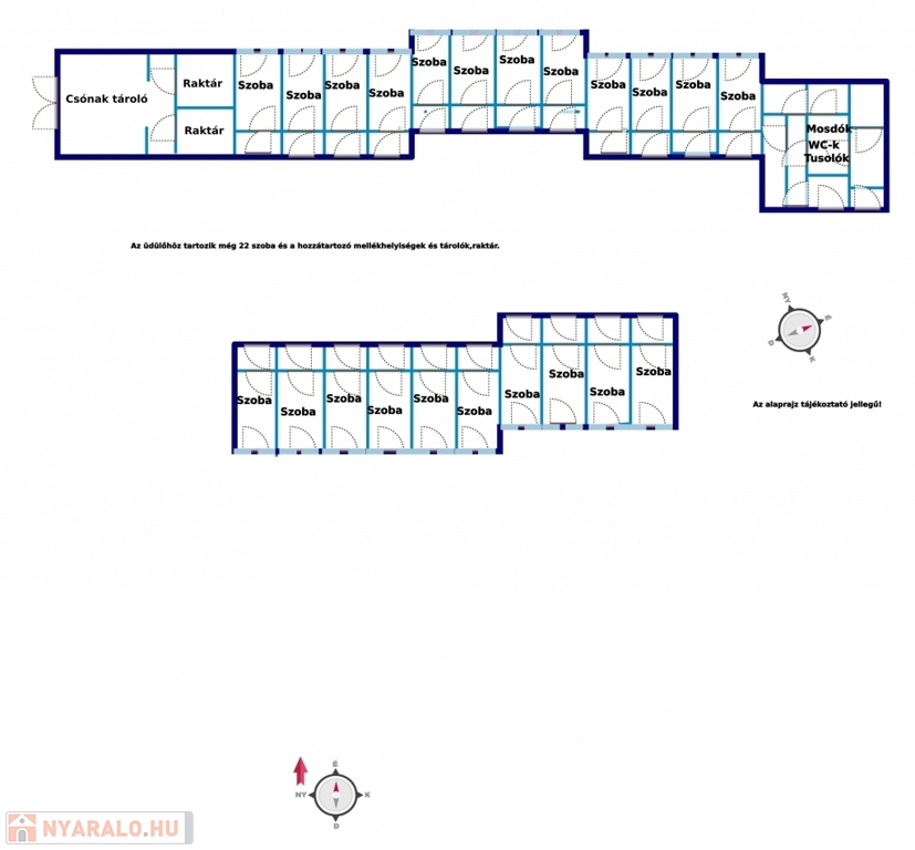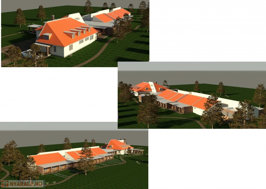 Az ingatlan összesen 9912 m²-es területen helyezkedik el, és közel 700 m² téglafalazatú épülettel büszkélkedhet. A komplexum egykor népszerű üdülőként üzemelt, mely 22 egyszobás apartmant és a főépületben további 6 szobát, 3 apartmant foglalt magában. A teljes terjedelmében körbekerített ősfás parkot hangulatos állólámpás megvilágítással látták el. Az ingatlan 60 méter hosszú betonozott parkolóval várja vendégeit.