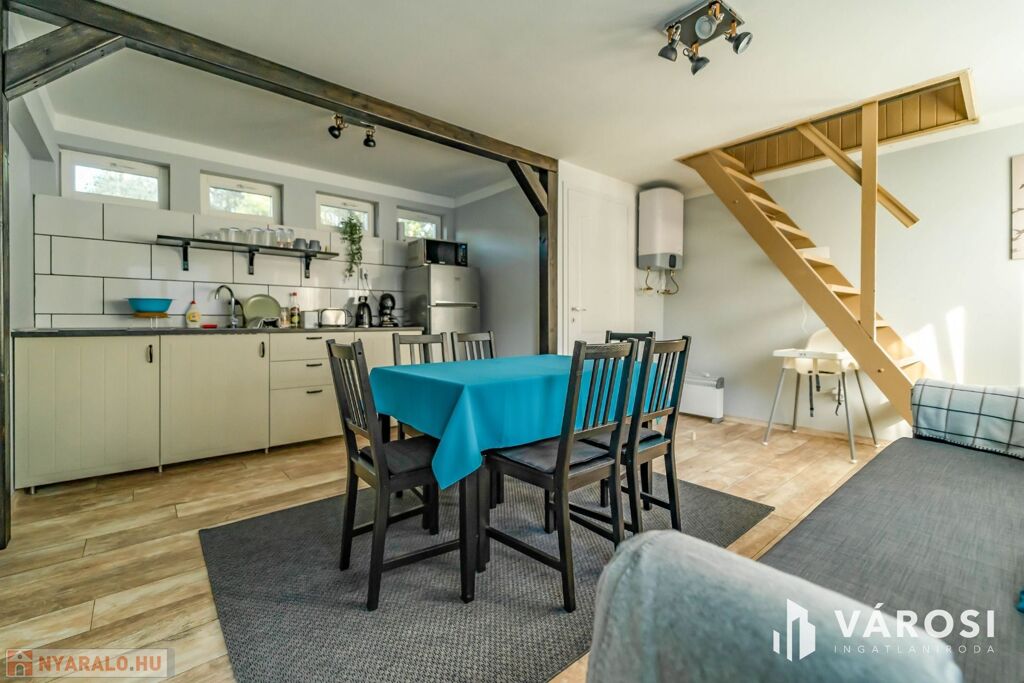 Eladásra kínálom Doboz-Szanazug csendes, természeti környezetében a Körösvölgyi Apartmanház üdülőkomplexumát, amely egyaránt ideális befektetésként, vállalkozási célra vagy saját pihenőhelynek. A három, egyenként 53 m² hasznos alapterületű, teljeskörű belső felújításon átesett, igényesen berendezett faház összesen 18 vendéget tud fogadni, mindegyik apartman modern konyhával, étkezővel, kényelmes hálószobákkal és fürdőszobával valamint hűtő-fűtő klímával és elektromos fűtő testekkel felszerelve várja az érkezőket.