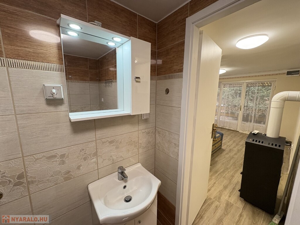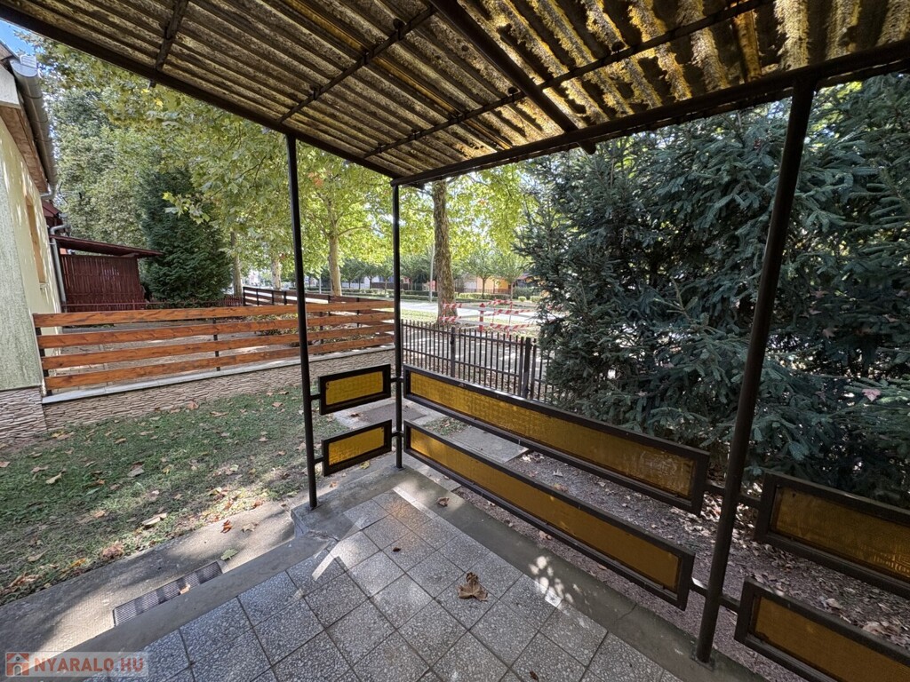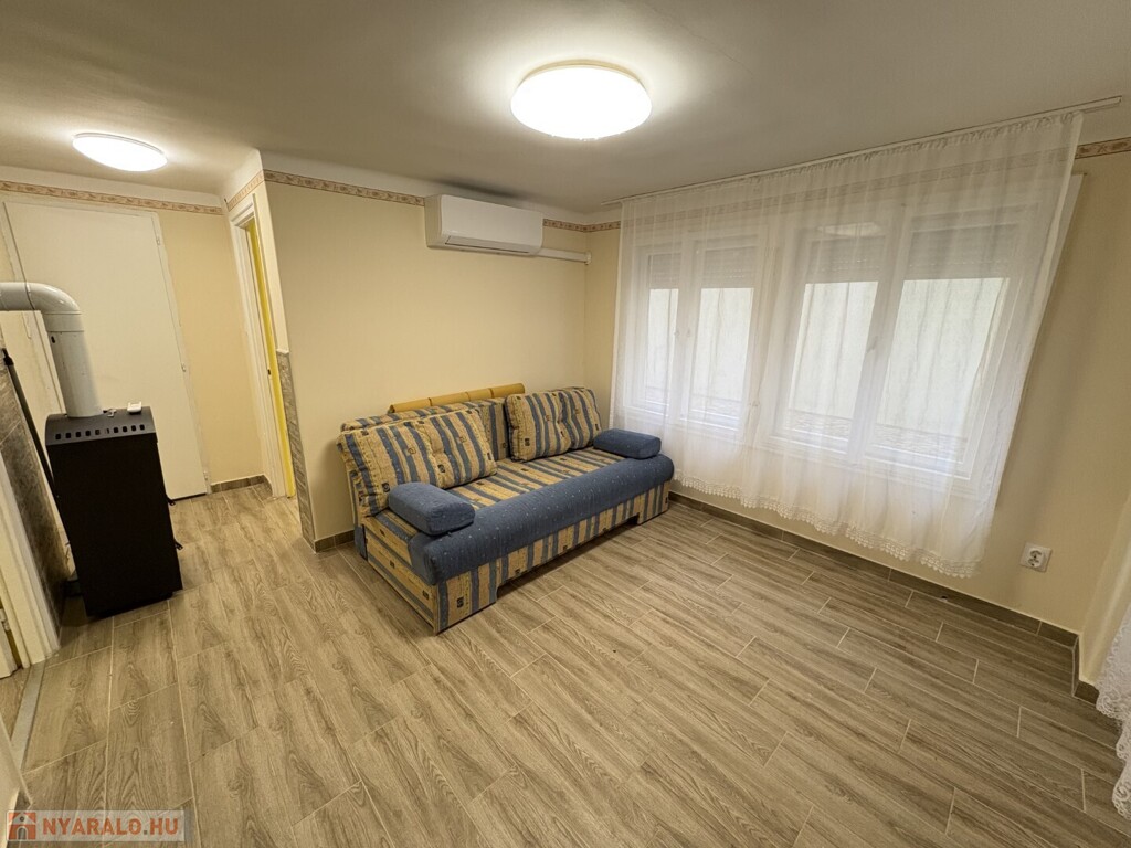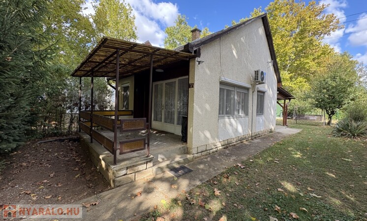 Dombóvár - Gunarasban - a gyógyfürdőtől csupán 200 m-re található - akár azonnal is birtokba vehető - 35 m2-es téliesített nyaraló eladó. Az épületben előszoba-nappali, 2 félszoba, kis konyha beépített konyhabútorral (Candy mosogatógéppel, Bosch főzőlappal és Cata elszívóval), kamra-kijárattal a hátsó fedett teraszra. Az épület akár télen is használható, a fűtése kandallóval megoldott, valamint a nappaliban légkondicionáló is felszerelésre került. A parkolás gépkocsival az udvarban lehetséges, ahol kerti csap, és szerszámok tárolására alkalmas kisház is áll. Telek: 305 m2.