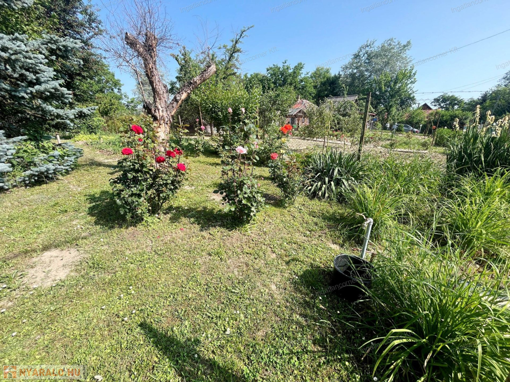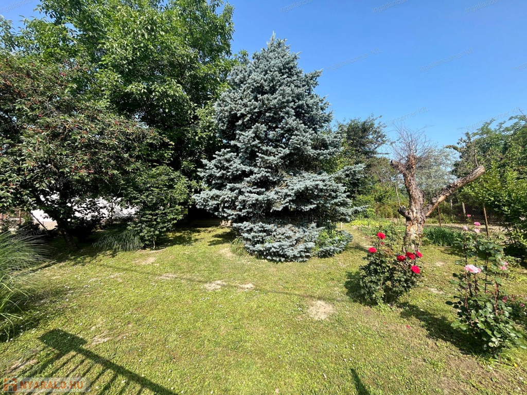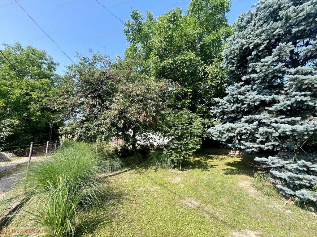 A 449 m2-es telken csodaszép, egészséges fenyőfa, diófa és meggyfa adja az árnyékot. Emellett tele van virágokkal és veteményessel is az udvar.