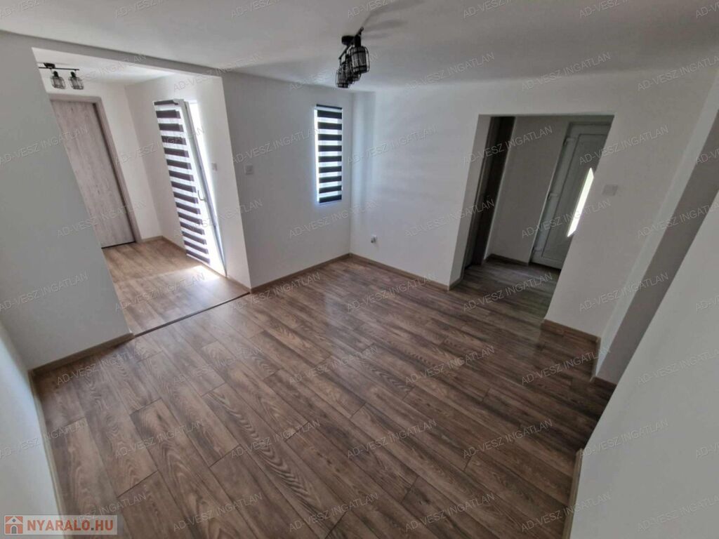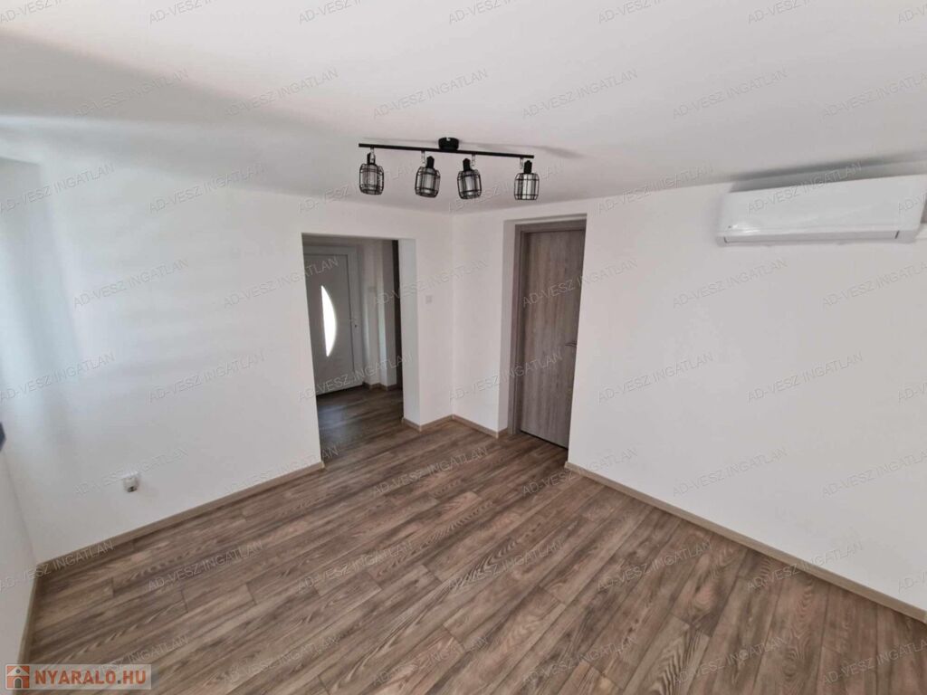 A ház műanyag nyílászárókkal, klímás hűtés-fűtéssel, 2,3m belmagassággal, a két hálószobában laminált parketta, a többi helyiségben pedig járólapos padló burkolattal rendelkezik.