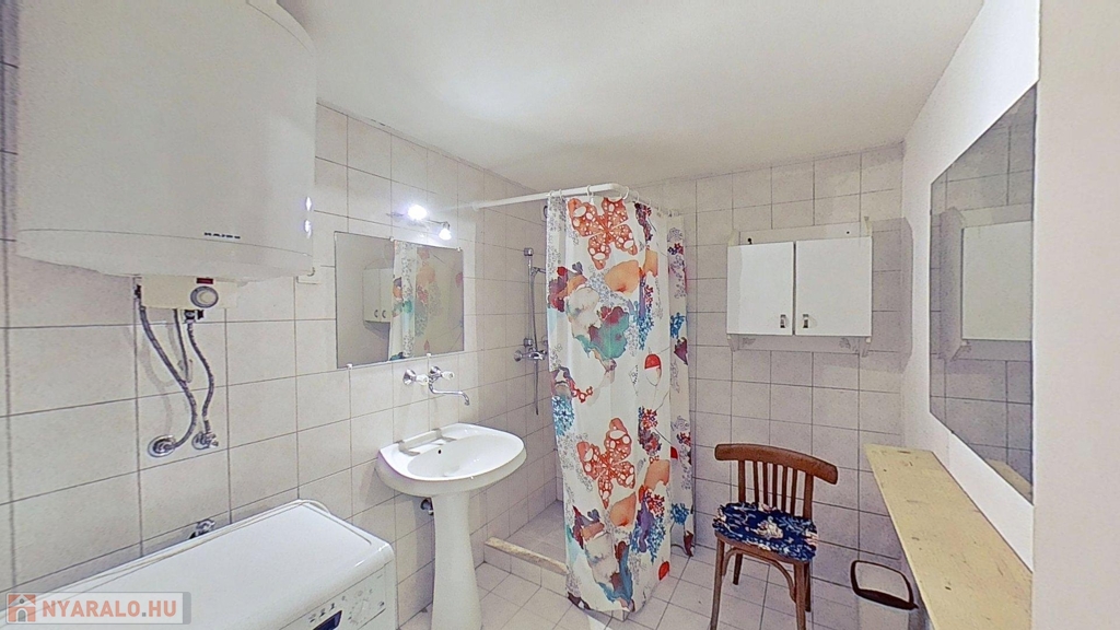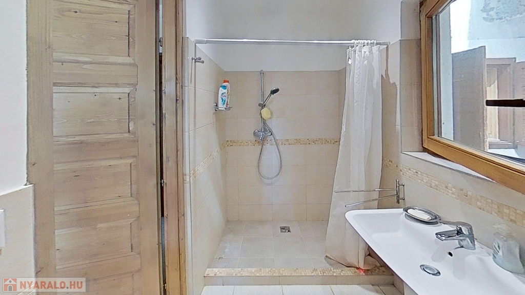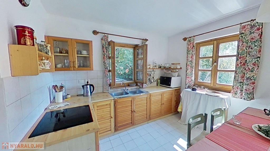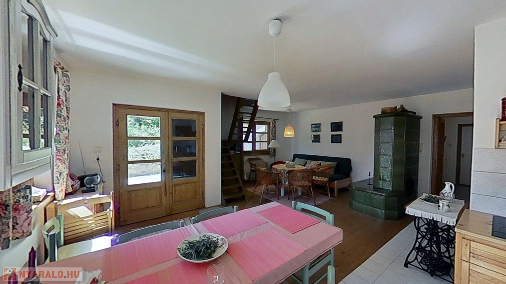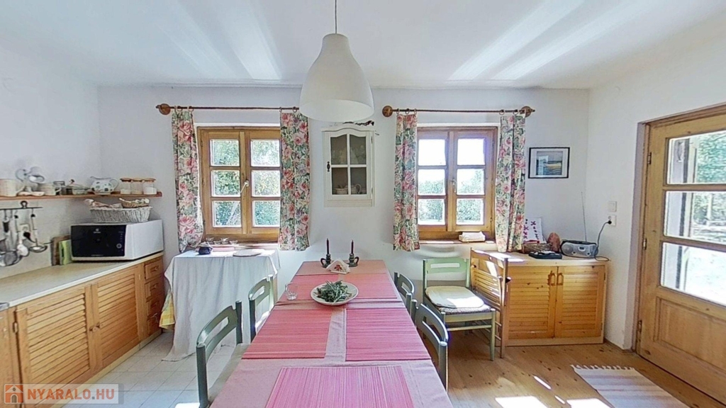 A Balatontól 6 km-re, a belterülettől néhány 100 méterre fekvő, minden évszakban könnyedén megközelíthető, 1994-ben épült, D-i tájolású, 2 szintes épület alsó szintje 78 m2, felső szintje 30 m2, mely tartalmaz két teljes értékű hálószobát, 2 fürdőszobát, valamint egy tágas előtér-nappali-konyhát.