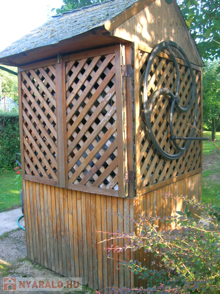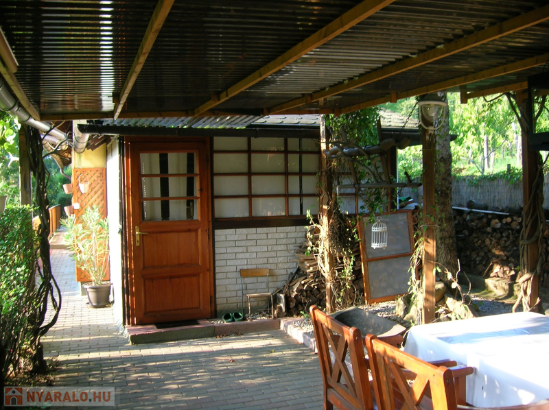 Ezen az oldalon egy kb. 22 m2-es, könnyűszerkezetes kisház is áll, amely fedett terasszal össze lett kötve a főépülettel. Jelenleg nyári konyha, de választható funkciójú, pl. egy szaunás, zuhanyzós wellnes sarok is kialakítható benne.