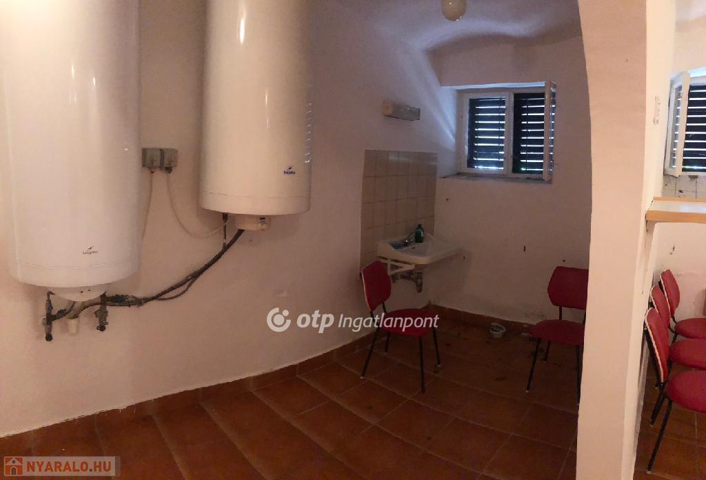 Fonyódon a Balaton partjától 500 m távolságra eladó egy 204,8 m2 egész évben lakható, felújítandó ingatlan! 828 m2-es telken helyezkedik el, három szintes. Az ingatlan kiváló befektetés lehet, hiszen az épület illetve a telek adottságai és a part közelsége tökéletes lehet, akár 6 különálló apartman kialakítására is! Alkalmas lehet céges üdülőnek vagy apartman kiadásra befektetőnek vagy akár, társas ingatlannak magánszemélyeknek is. Az épület legalsó szintjén található egy garázs (14,12 m2), amelyben egy zuhanyzó és wc került kialakításra. Szuterén megoldással, szinteltolással tervezték meg az épület, földszintjét (55,73 m2), ahol jelenleg konyhai helyiségek és étkezők találhatók nagy közlekedő helyiségekkel. Az emeleten 4 külön bejáratú szoba vár ránk és egy társalgó helyiség nagy terasszal. Mindegyik szobához tartozik vizesblokk. A földszinti helyiségek mázas kerámia burkolatot kaptak, míg az emeleti szobákban parkettát helyeztek le. Az emeleti fürdőszobákban és a wc-ben illetve a társalgóban szintén mázas kerámia burkolat került lehelyezésre.