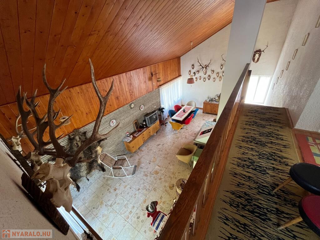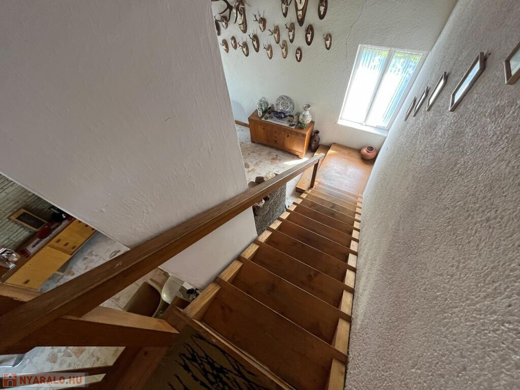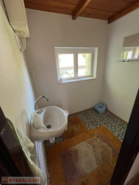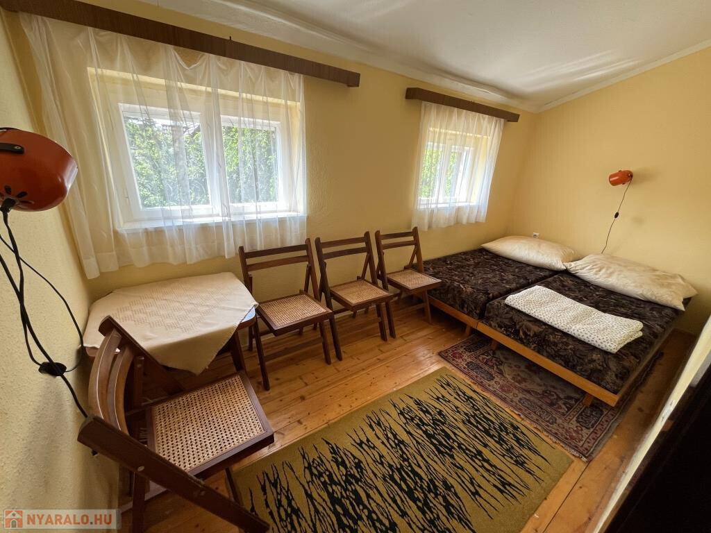 Fonyódliget egyik csendes, partközeli utcájában, a Thököly utcában kínáljuk megvételre ezt a kétszintes, 110 m2-es, jó elosztású családi nyaralót. Impozáns nappalijában harmonikusan van jelen a természetes fa- és a kőburkolat, a tágas, világos belső tér igazán barátságos, nagyobb társaságnak is kényelmes helyet ad. Terasz is csatlakozik hozzá. A földszinten ki van még alakítva egy háló, a zuhanyzós fürdő és a konyha; minden helyiség egy kis előtérből nyílik, ahová bejárati ajtó is vezet. Az emeletre a nappaliból megy fel a lépcső, itt szintén a közlekedőből nyílik két szoba, a WC, valamint egy erkély. A ház jó állapotú, a kerttel együtt szépen karbantartott. A közművek közül a gáz kivételéven minden bevezetésre került. A telek teljesen sík, 459 m2, füves, parkos. Kifejezetten jó helyen fekszik a nyaraló, a Balaton kb. 200 m, vagyis 3-4 perc sétával elérhető a strand. A környék rendezett, az utca csendes, nyugodt, a főút távolabb fut.
