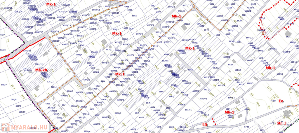 Övezeti besorolása mk-1 mely 5%-os beépíthetőséggel számolva 50nm-es alapterületű ingatlan építését engedélyezi tetőtér beépítésével.