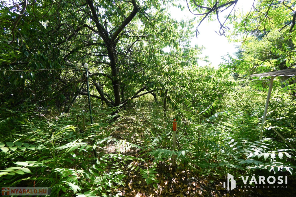A telken több gyümölcsfa mellett tárolót, fedett teraszt találunk.