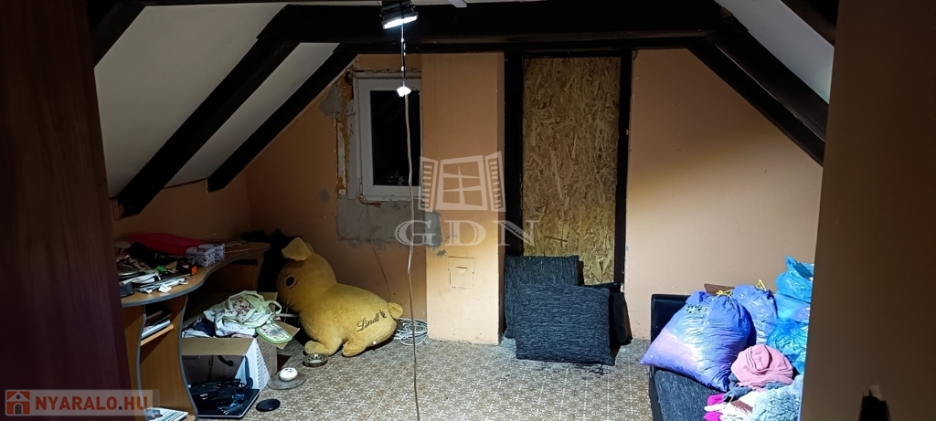 A tetőtéri rész beépített, a nyílászárók itt is újak, hőszigeteltek. Egy előtér és egy szoba került kialakításra.