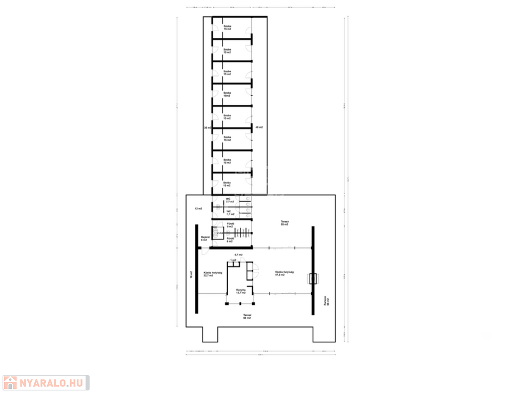 Az épület kis felújítással jelenleg is alkalmas táborok vagy csoportok szezonális fogadására, a szálláshely 8 szobával üzemeltethető. A szobák előterében megtalálható a víz és vízelvezetés, nagyobb ráfordítással 8 stúdió apartman alakítható ki benne saját wc-vel ,saját fürdővel, saját minikonyhával.