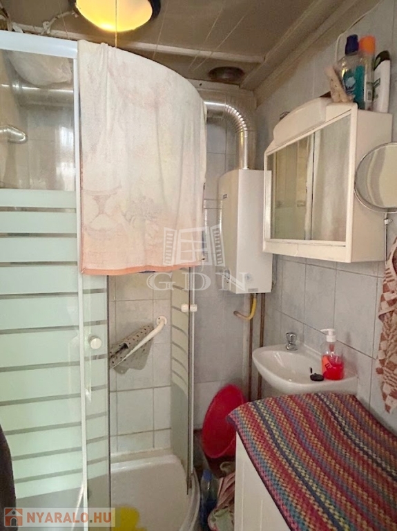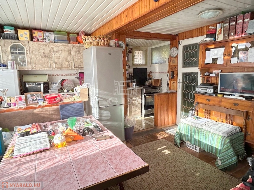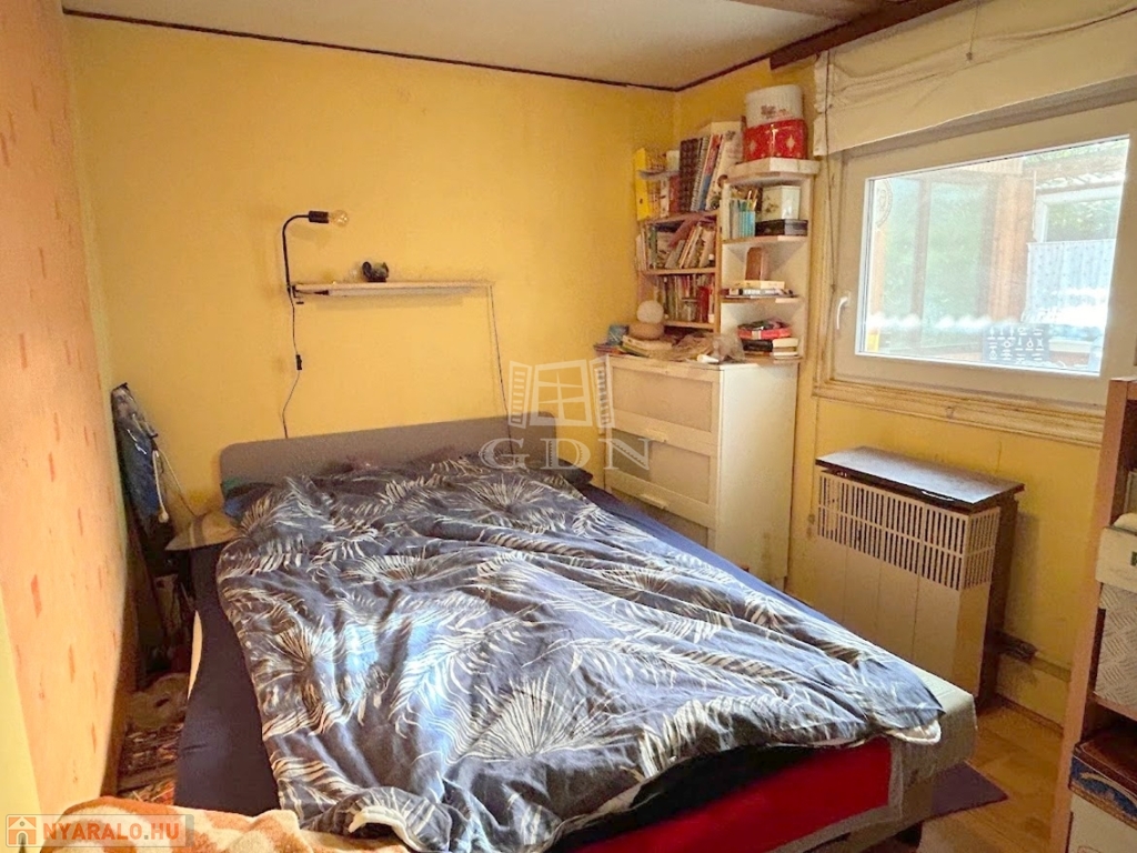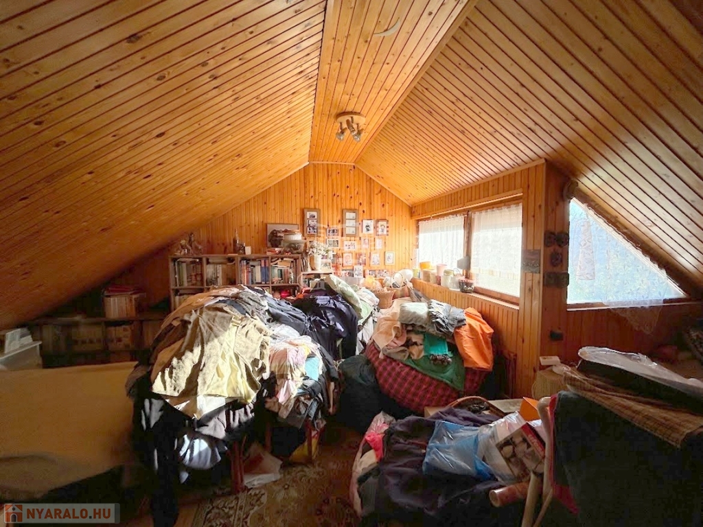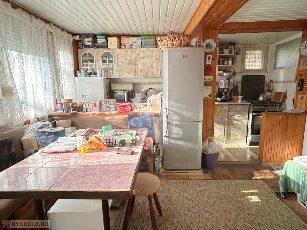 4804. Gárdonyban, 1 km távolságra a tóparttól, csendes kertvárosi utcában, 1975-ben épült favázas könnyűszerkezetes "Éva faház" ikernyaraló, a földszinten tégla bővítményi résszel, gázkonvektor fűtéssel, kis melléképülettel, fedett terasszal, 233 m2-es telekrésszel, közepes-felújítandó állapotban eladó. Részleges felújítások történtek az elmúlt 10 évben: fémlemez héjazat, részleges homlokzati hőszigetelés, külső nyílászárók részleges cseréje. Irányár: 39,99 Mft