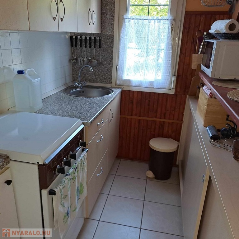 Földszint lakórésze 24 m2, melyben konyha-étkező-nappali és fürdőszoba található, a tetőtér lakóterülete 18 m2, itt 2 hálószoba kapott helyet. A teraszról gyönyörű kilátás van a gombai tóra!!!