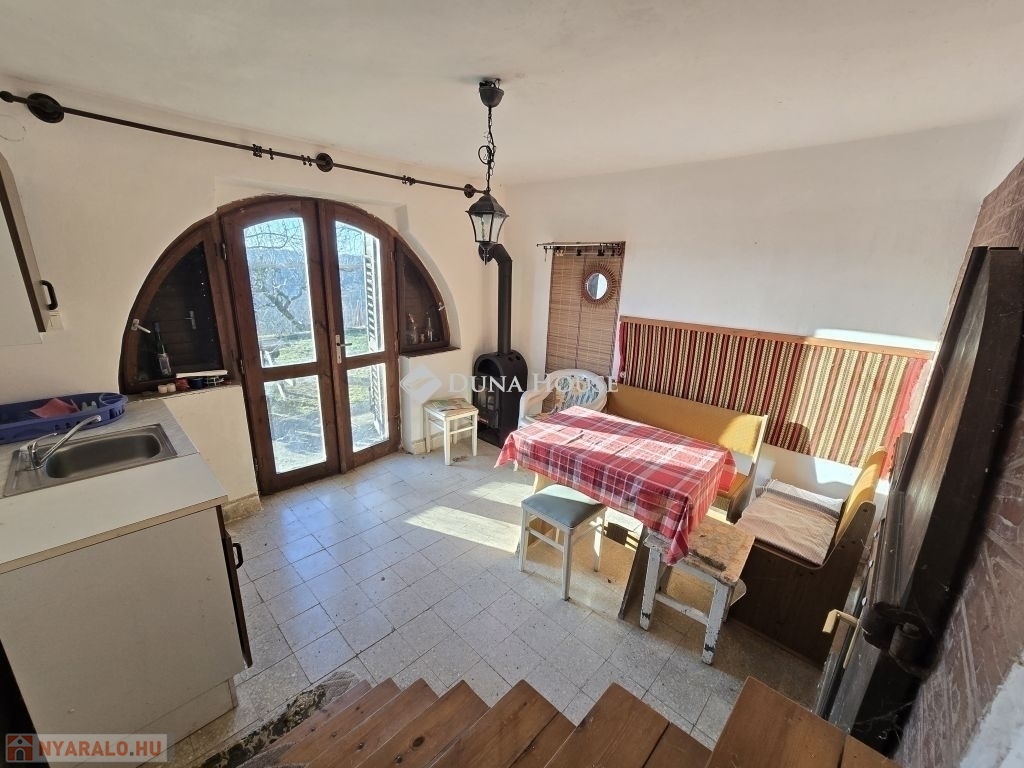 Panorámás zártkerti telek kis házzal eladó Gyódon, Pécstől 5 km-reGyód felső részén, a napos fennsíkon eladó egy 700 m²-es, panorámás, zártkerti telek egy kb. 20 m² alapterületű, belső kétszintes gazdasági épülettel, mindössze kb. 5 km-re Pécstől.Az épület 1985-ben épült, karbantartott állapotú. Nem lakóingatlanként használták, de felújítással akár állandó lakhatásra is alkalmassá tehető, a környéken többen életvitelszerűen laknak.Az alsó szinten konyhaétkező, wc kézmosóval, valamint egy könnyen megközelíthető pince található (csak egy lépcsőfok vezet le). A felső szinten két egymásból nyíló helyiség van, amelyek szobaként használhatók.A telek körbekerített, két utcáról is megközelíthető, aszfaltos úton elérhető, hivatalos házszámmal rendelkezik . A terület lejtős, nyugati tájolású, így napos és szép panorámával rendelkezik.A telken vezetékes víz van a házban, ami a zártkerti ingatlanoknál külön előny. Gáz a telken belül megtalálható, jelenleg kályhával fűthető az épület. Emellett kerti csap, ciszterna, ülepítős szennyvízmegoldás, pince és egy kisebb szerszámtároló is tartozik az ingatlanhoz.Ideális választás lehet hétvégi háznak, kertészkedéshez vagy felújítás után akár állandó lakhatásra is.A terület művelés alól kivont,így azonnal birtokba vehető.További kérdéseivel és személyes megtekintésért várom hívását,akár hétvégén is!
