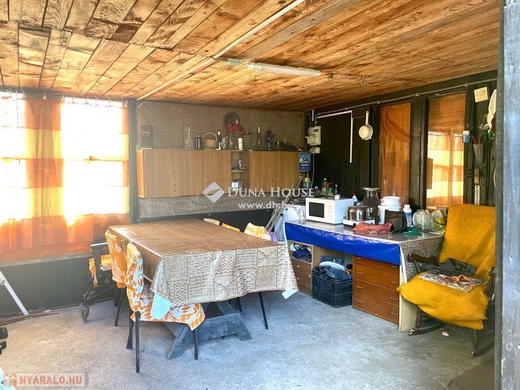 Győrtől és az Auditól 7 km-re, GYŐRSZENTIVÁN KERTVÁROSÁBAN keresi új tulajdonosát ez a TÜNEMÉNYES HÁZIKÓ, GYÖNYÖRŰ KÖRNYEZETBEN.A ház KÍVÜL, BELÜL FÁBÓL ÉPÜLT, így nem csak kellemes hangulatot áraszt, hanem természetes, mint maga a környezet. A lakótér jelenleg két helyiségből áll konyha étkezővel, szoba és egy galéria. Az épület 1358 nm -es telken kapott helyet, az udvaron pince és egy 18 nm-es mobilgarázs is található.A kert a nyugalomhoz, a csendhez és a kertészkedéshez is kiváló területet biztosít. A gondozott udvaron számtalan TERMŐ GYÜMÖLCSFA található (cseresznye, barack, megy, körte, szőlő és dió), továbbá virágok és cserjék díszítik. A telek 30% beépíthetőséggel rendelkezik (max. 45 nm), közművek közül a villany és vezetékes víz be van vezetve, központi csatornarendszerre nincs rákötve, derítő megtalálható. Gáz az utcában van elvezetve. Az udvaron FÚRT KÚT segíti az ingyenes locsolást. A terület minden oldalról fém oszlopokon elhelyezett drótkerítéssel BEKERÍTETT. Az udvarra egy 2 szárnyas kapun keresztül lehet bejutni. Az utca rendezett, végig aszfaltozott. A környéken szinte minden telken lakóingatlan található. A házikó és kertje egyeztetést követően megtekinthető, ha beleszeret, azonnal birtokba vehető. Az ingatlanra CSOK nem igényelhető, ám kivett zártkert lévén kifüggesztésre NEM kötelezett, így azonnal megvehető!A központ nagyjából 2 km, ahol minden megtalálható SPAR, CBA, posta, gyógyszertár, orvosi rendelő.