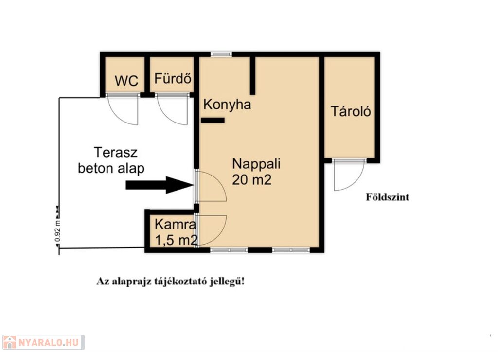 Az alsó részen egy hangulatos nappali, terasz, tusoló+WC, főzőfülke, kamra található, az emeleti részen 1 szoba és egy előtéri rész. Valamint egy tároló helyiség is.
