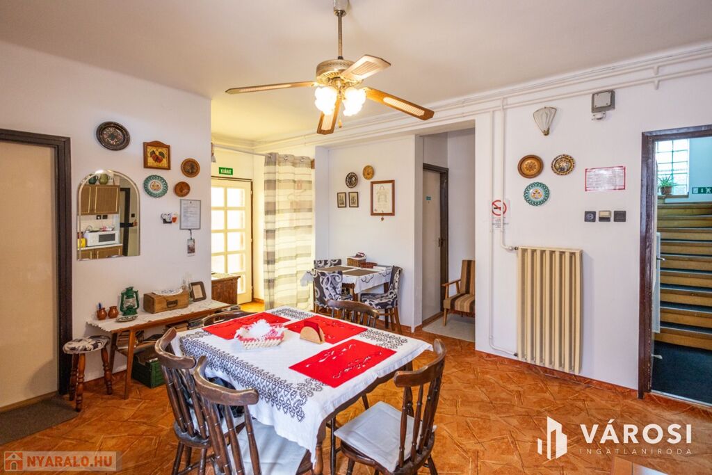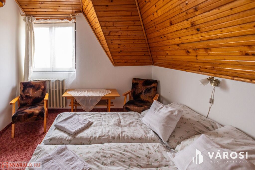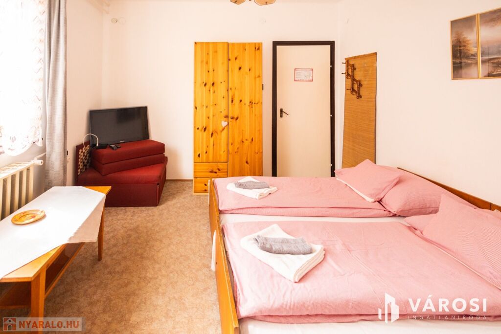 Gyulán, kiemelt övezetben, a Várfürdő főbejáratától mindössze 200 méterre eladóvá vált egy nagyon jó elosztású, 480 nm alapterületű panzió. Az ingatlanban 12 különálló szoba található, melyek akár 30 fő befogadására is alkalmasak, a szobákhoz 1-2 egységenként külön fürdőszoba és WC került kialakításra. Az ingatlan két épületrészből áll, melyek külön bejárattal két utcáról is megközelíthetőek. Az épületek 3 szintesek, minden szinten közösségi társalgó lett kialakítva, így tökéletes lehet akár nagyobb családok, baráti társaságok számára is. Az emeleti szobákból gyönyörű kilátás nyílik a Gyulai várra és a várkertre.